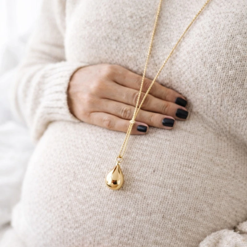 - nosia sa na dlhšej retiazke/šnúrke tak, aby sa prívesok pohyboval na brušku tehotnej ženy