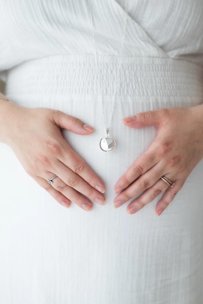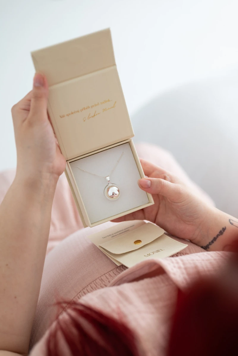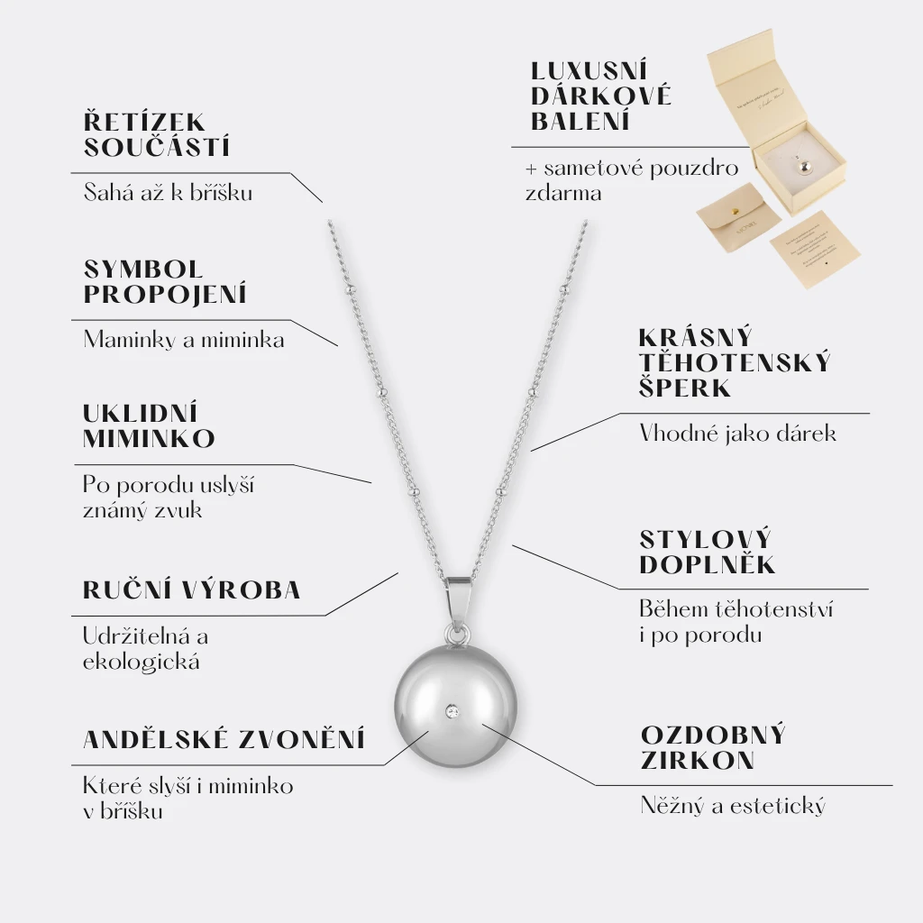 Tehotenská bola Moniel Glow s bielym kamienkom a retiazkou bude ich dokonalým šperkom a spomienkou na obdobie tehotenstva.