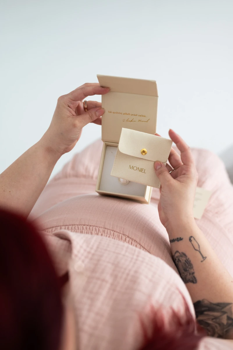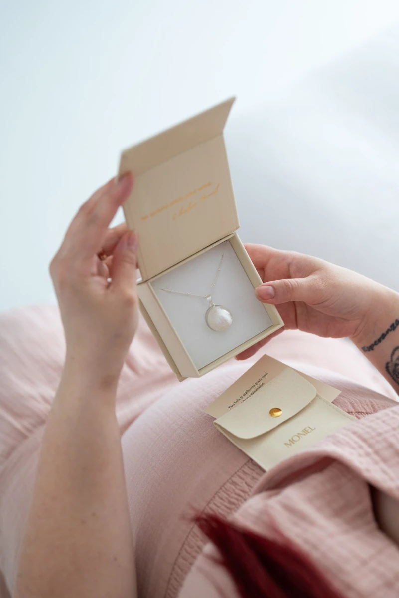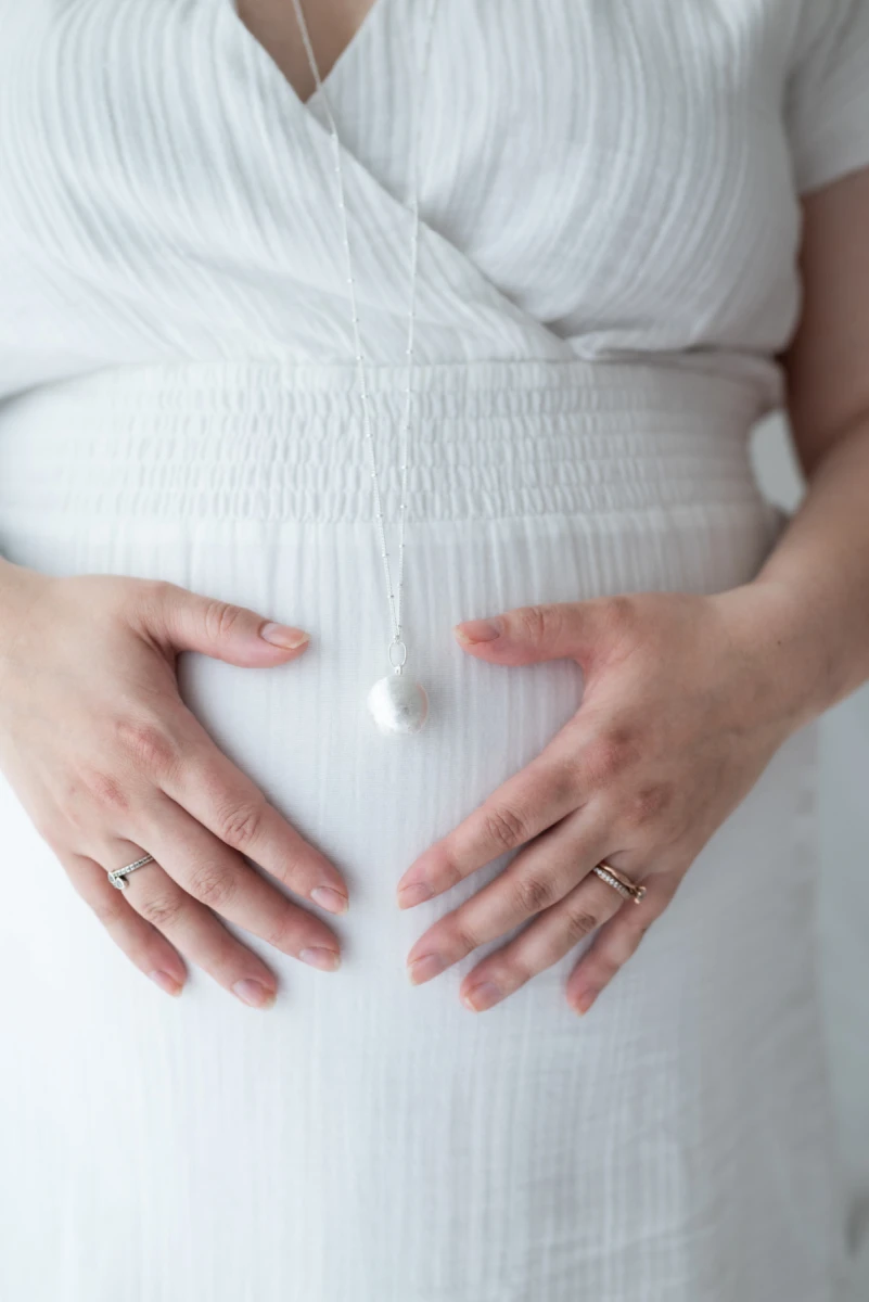 Tehotenská bola Moniel Glow s bielym kamienkom a retiazkou bude ich dokonalým šperkom a spomienkou na obdobie tehotenstva.