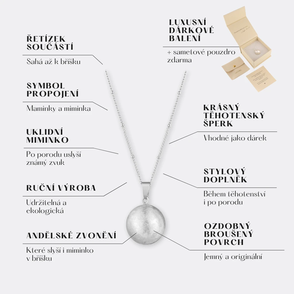 Tehotenský šperk bola Moon strieborná s brúseným povrchom + retiazka Moniel