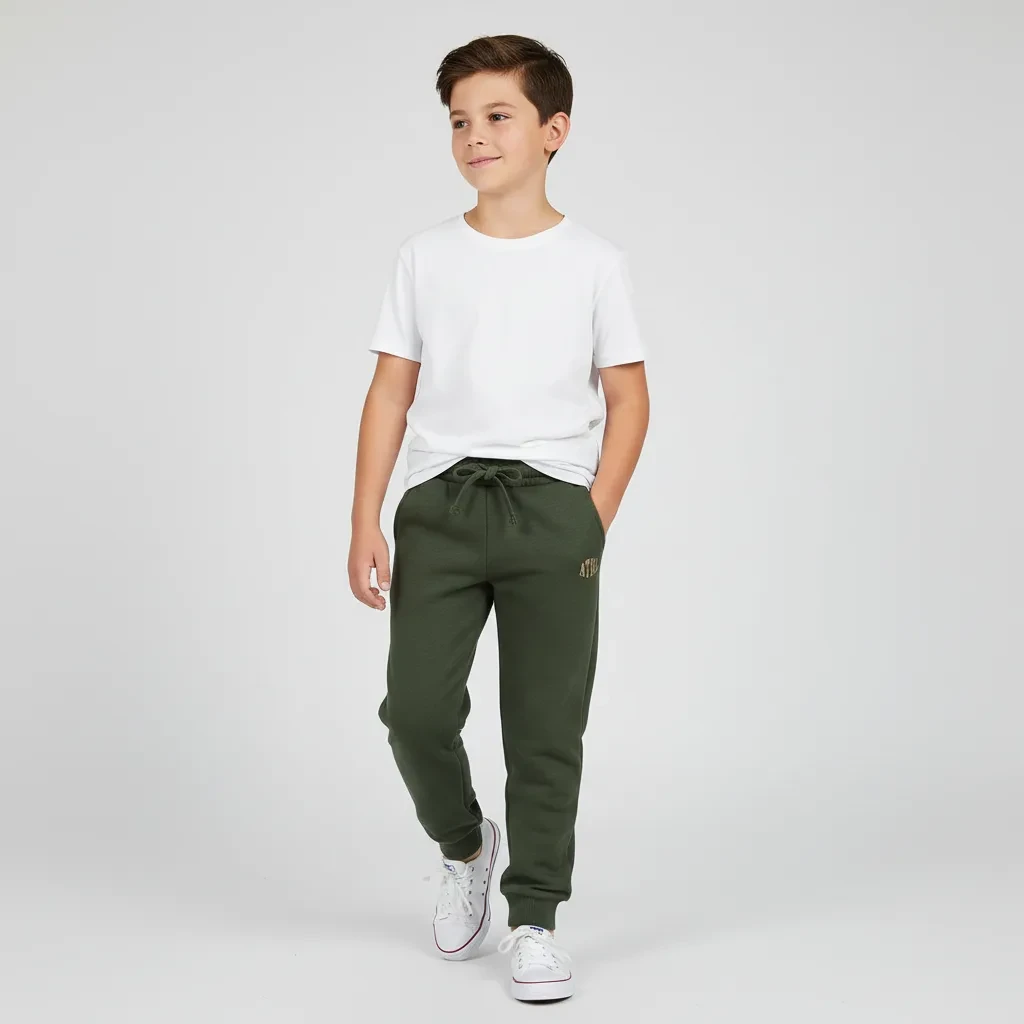 Tepláky sú vyrobené z pletenej zmesi bavlny a polyesteru , ktorá spája mäkkosť a priedušnosť bavlny s odolnosťou polyesteru . Materiál je príjemný k detskej pokožke a zároveň dostatočne pevný, aby vydržal aktívne hry aj časté pranie .