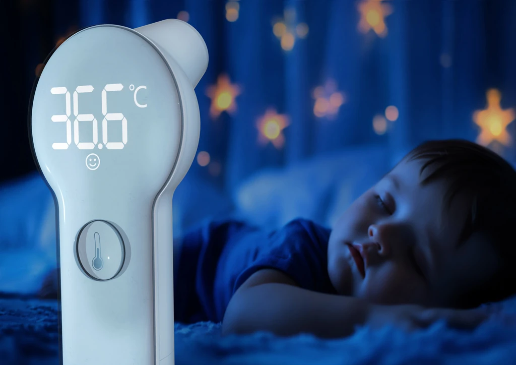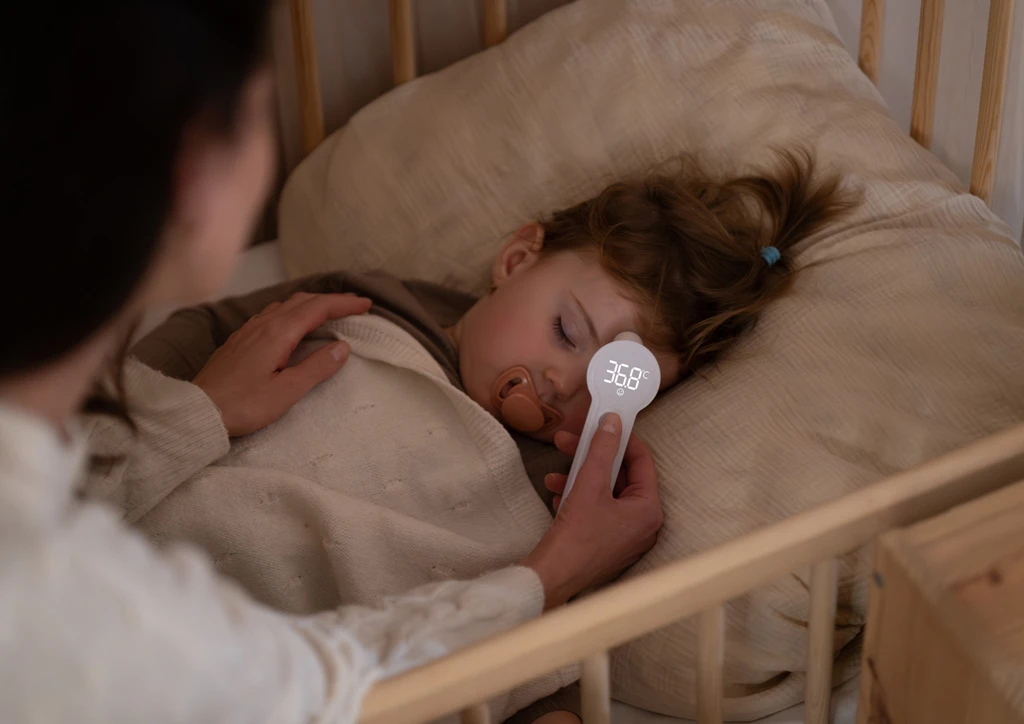 - Zvukové signály: Teplomer vás informuje, keď je meranie dokončené jasným pípnutím. Tiež vás upozorní, ak výsledok naznačuje horúčku.