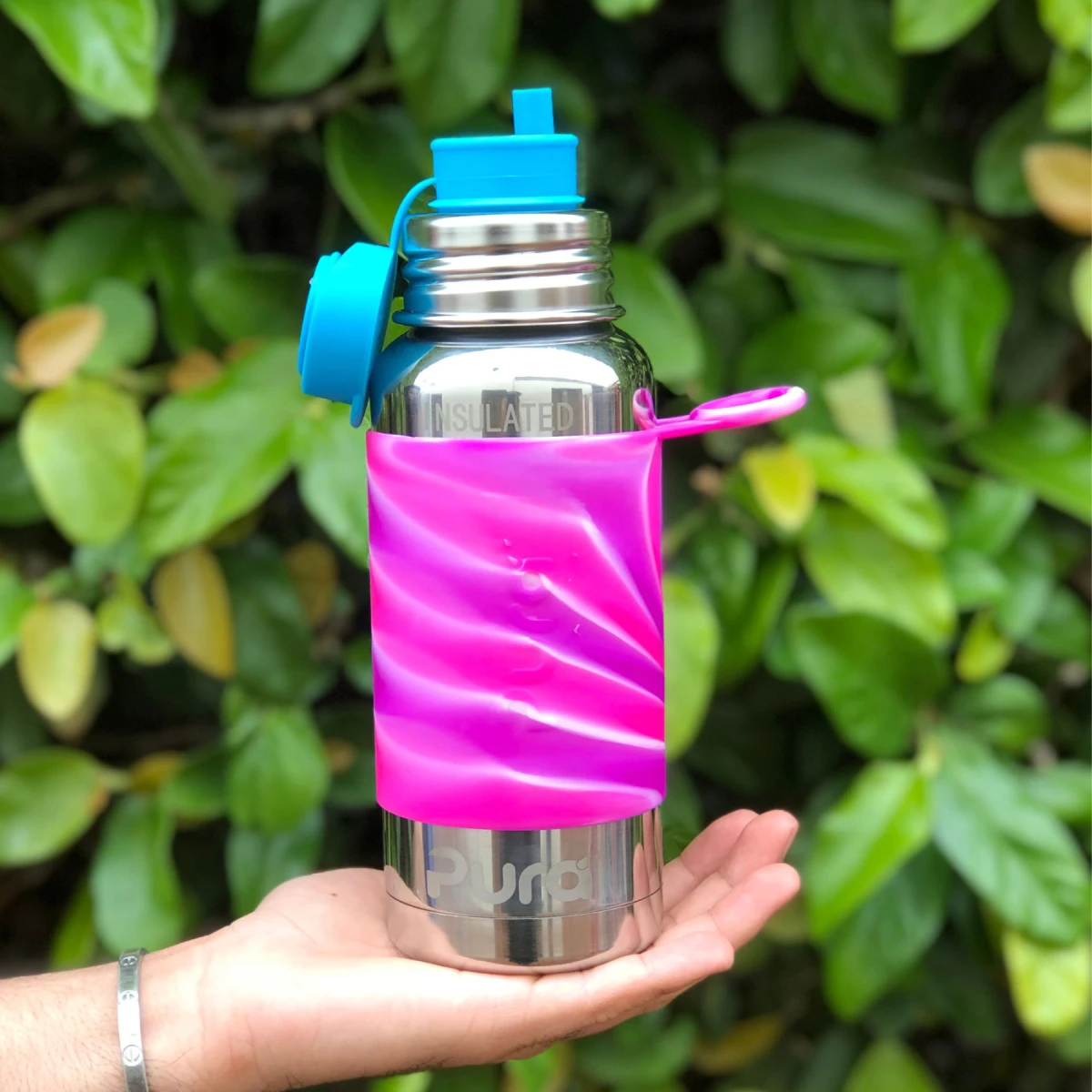 Fľaša a objímka sú vyrobené z antibakteriálnej nerezovej ocele # 304 (18/8) a ostatné časti zo silikónu najvyššej medicínskej kvality. Bez BPA, PVC, ftalátov a bez akýchkoľvek iných nebezpečných látok a toxínov, testované podľa smerníc EÚ. Pura Big Mouth® športový uzáver je vyrobený zo 100% silikónu medicínskej kvality. Jednoduchý tvar bez nedostupných častí na ľahké čistenie. Malý otvor na pitie eliminuje rozliatie a ventil zároveň zaisťuje plynulý tok tekutín. Viečko je súčasťou uzáveru a preto ho nikdy nestratíte, výborne tesní a spoľahlivo chráni pred rozliatím obsahu fľaše do tašky.