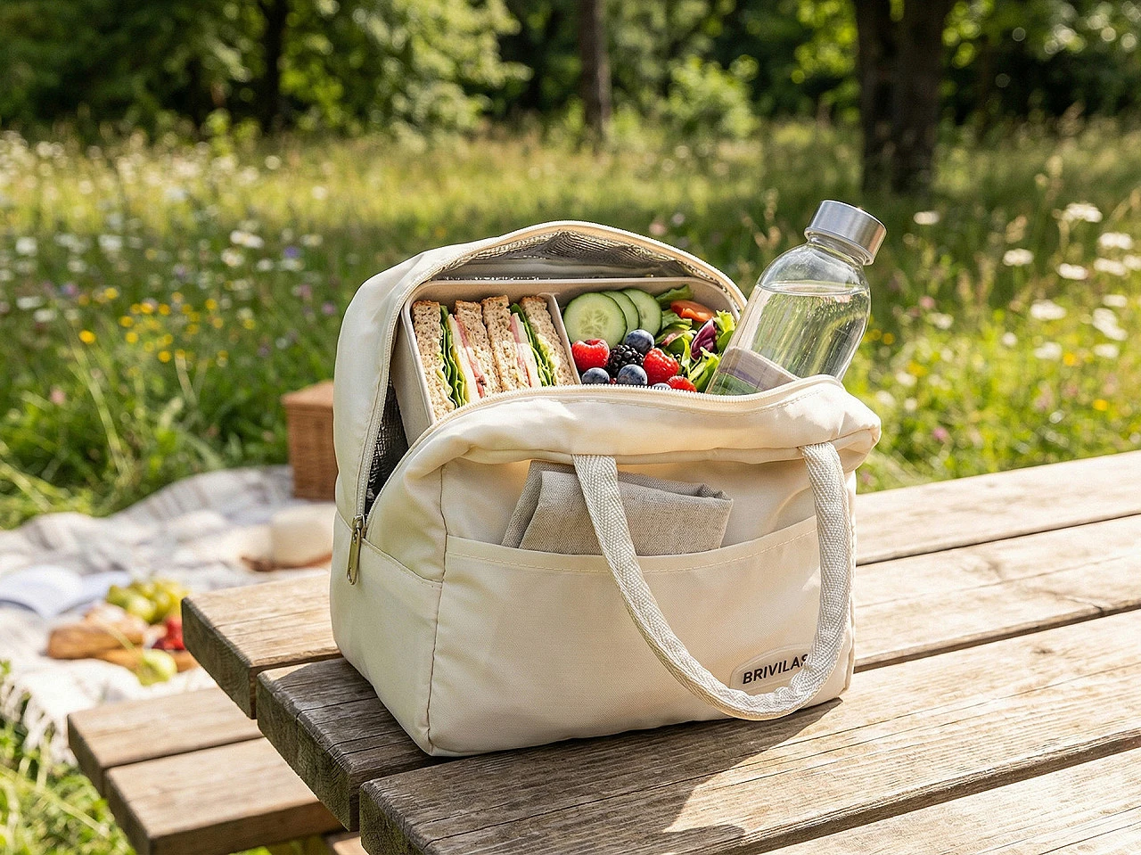 Na prednej strane má ploché vrecko. Uchováva potraviny po určitú dobu pri rovnakej teplote. V hlavnom úložnom priestore je izolačná vrstva, ktorá je umývateľná. Vďaka širokému dnu má dobrú stabilitu. Zapína sa na zips, hore má uši na pohodlné prenášanie.