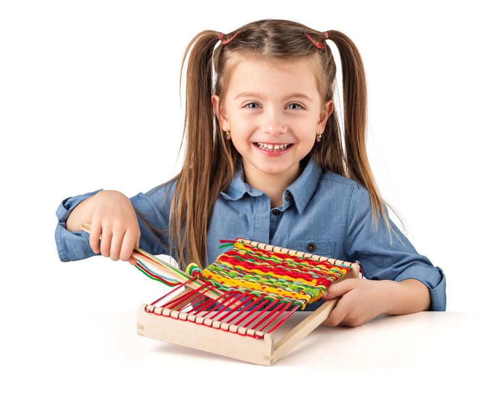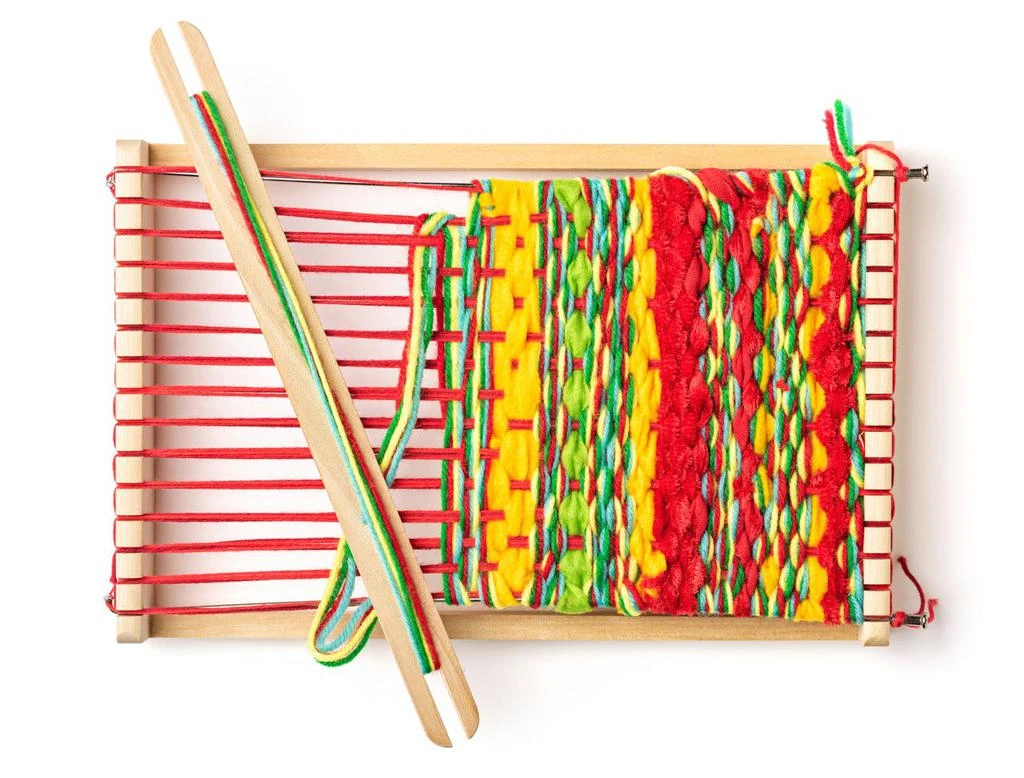 Jednoduchý drevený tkáčsky stav. Vynikajúca hračka pre rozvoj manuálnej zručnosti.