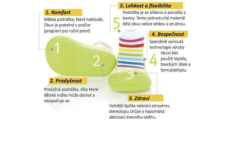 - Priedušná podrážka, vďaka ktorej detská noha môže dýchať a nezaparuje sa.