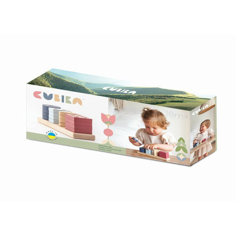 Cubika je značka drevených hračiek vyrobených iba z ekologicky pestovaného dreva s veľmi precíznym opracovaním a ľúbivým dizajnom a tento výrobok patrí do novej kolekcie vyrobenej v pastelových farbách.