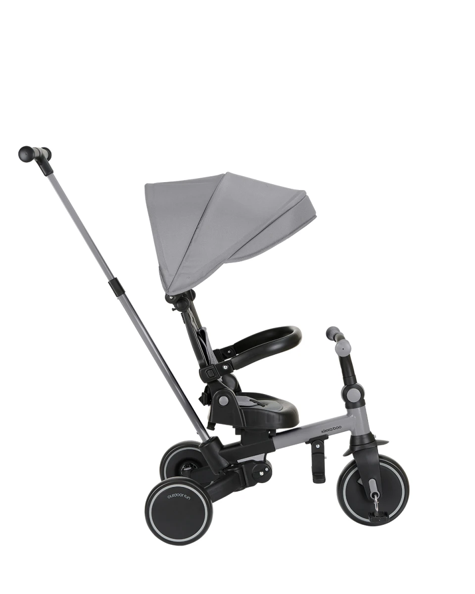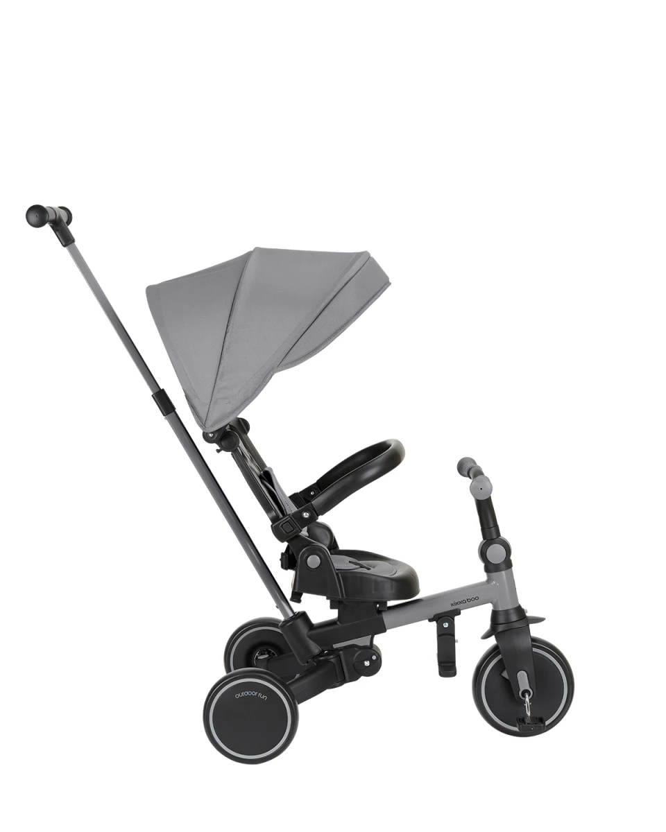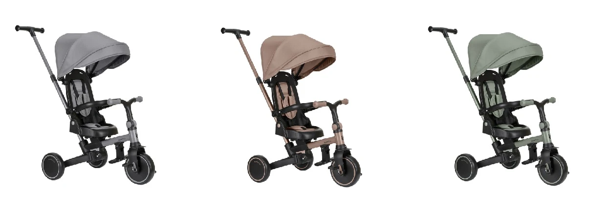 Multifunkčná trojkolka KikkaBoo Aluma 8v1 je navrhnutá tak, aby dieťaťu slúžila naozaj dlho – od 12 do 60 mesiacov. V začiatkoch funguje v bezpečnom „kočíkovom“ režime s vedením rodičom, postupne prechádza do samostatnej jazdy ako trojkolka s pedálmi a odrážadlo. Vďaka skladaciemu prevedeniu a šikovným detailom je ideálny aj na cestovanie.