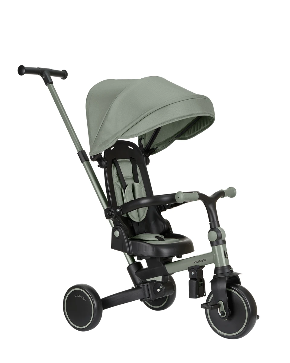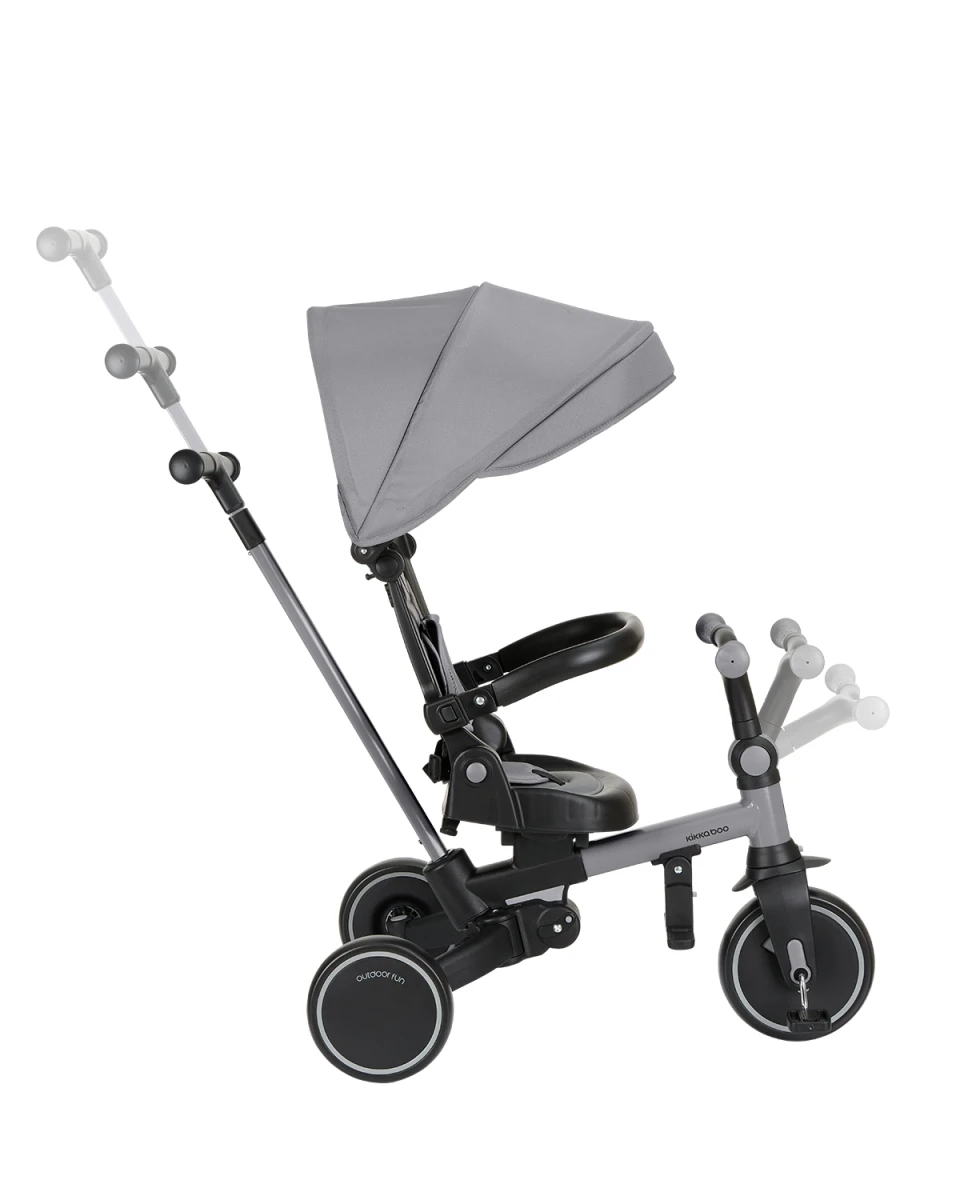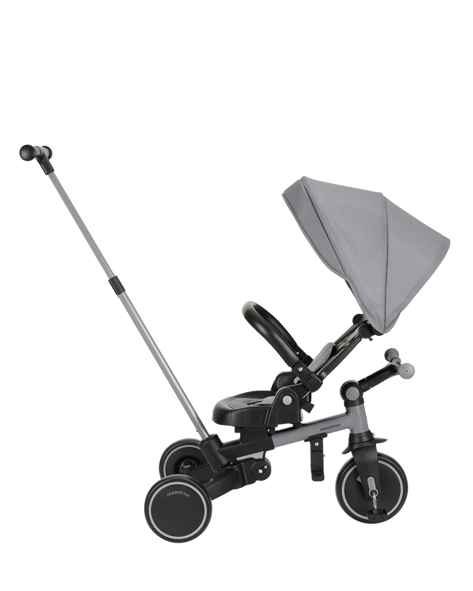 Multifunkčná trojkolka KikkaBoo Aluma 8v1 je navrhnutá tak, aby dieťaťu slúžila naozaj dlho – od 12 do 60 mesiacov. V začiatkoch funguje v bezpečnom „kočíkovom“ režime s vedením rodičom, postupne prechádza do samostatnej jazdy ako trojkolka s pedálmi a odrážadlo. Vďaka skladaciemu prevedeniu a šikovným detailom je ideálny aj na cestovanie.