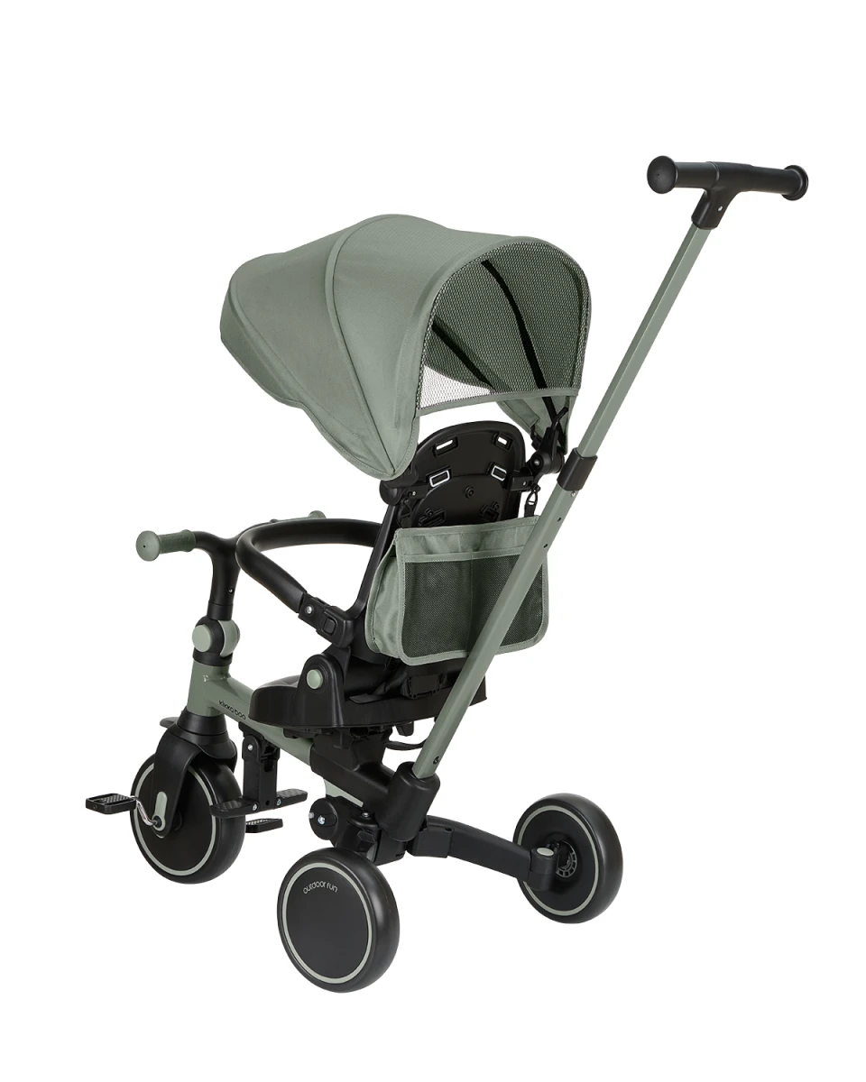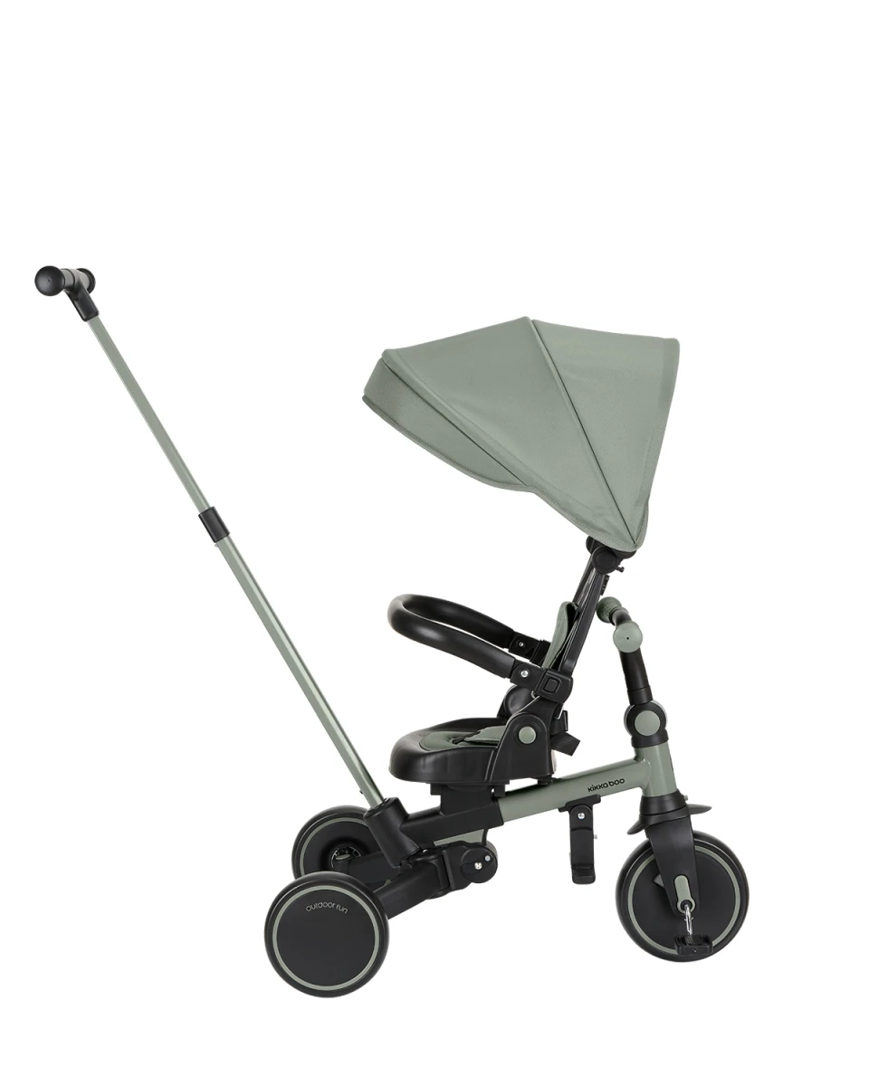 Pre maximálnu bezpečnosť je trojkolka vybavená 5-bodovým pásom, odnímateľným bezpečnostným madlom a nastaviteľnou strieškou, ktorú je možné podľa potreby odňať. Nechýba sklápacia opierka chrbta nastaviteľná do 4 polôh, nastaviteľné riadidlá a otočné sedadlo.