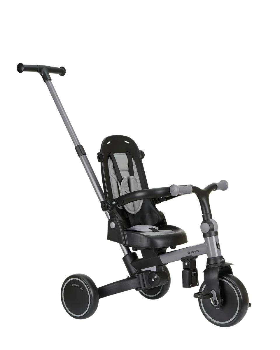 Rodičia ocenia nastaviteľnú vodiacu tyč v 3 polohách, vďaka ktorým sa trojkolka dobre ovláda. Pedále na prednom kolese je možné zablokovať, zadné kolesá majú brzdu a celé zloženie funguje jedným tlačidlom. Na prenášanie je k dispozícii madlo a na drobnosti taška na príslušenstvo.