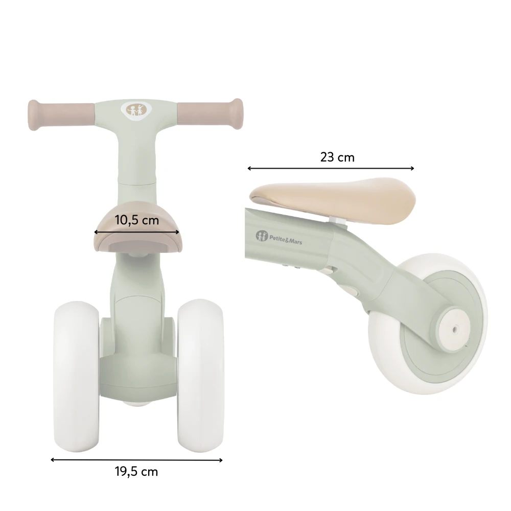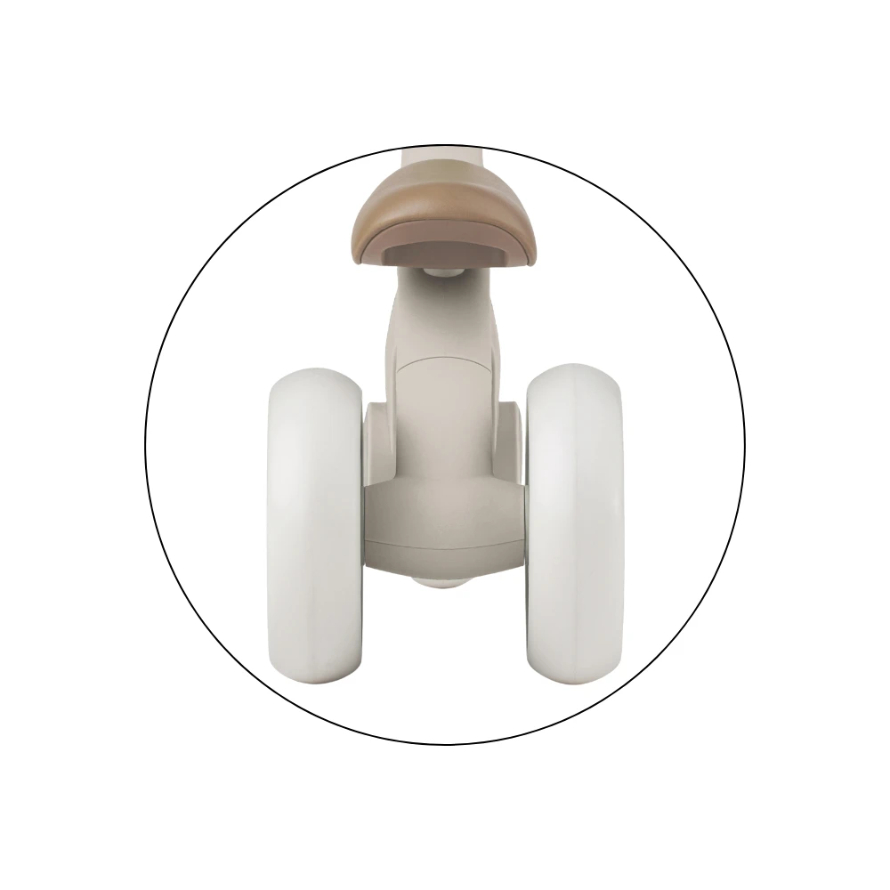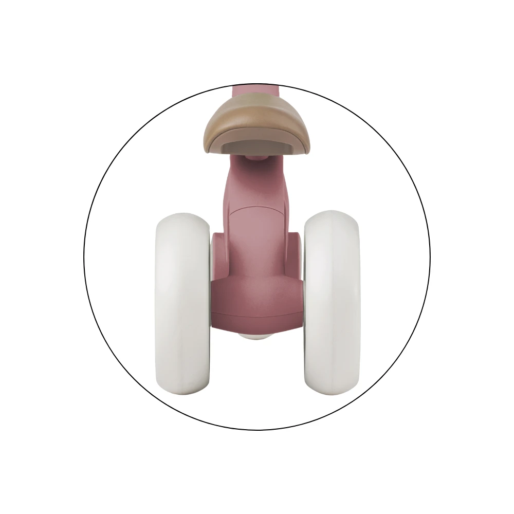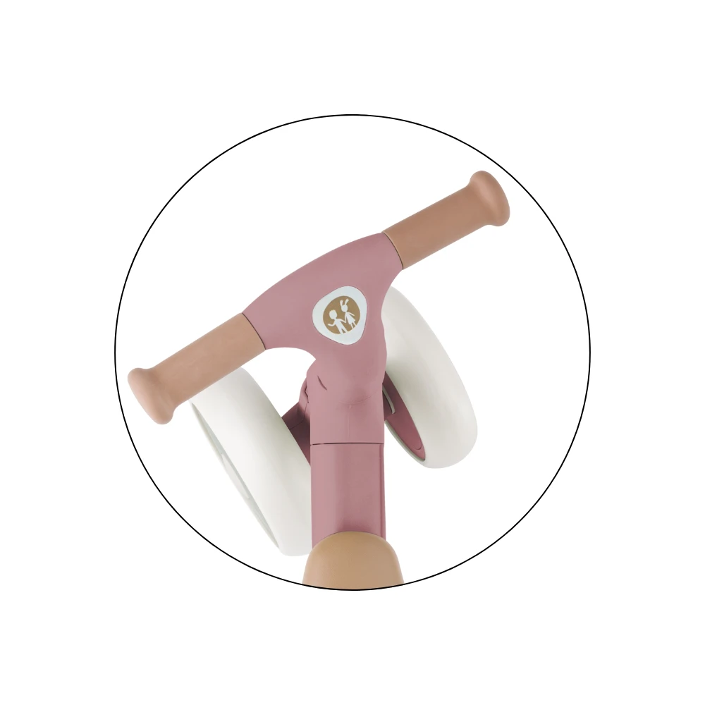 Bingo má otočné riadidlá, dve nastaviteľné výšky sedla a vážia len 2,3 kg, takže ho rodičia bez problémov prenesú - aj s taškou alebo dieťaťom v druhej ruke. Penové kolieska sú tiché a zvládnu interiér aj vonkajší povrch. Celý dizajn pôsobí moderne, jemne a zároveň nadčasovo.