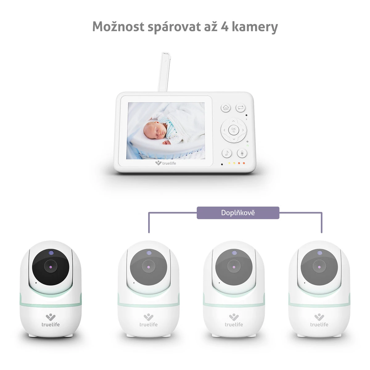 Detekcia teploty, automatické nočné videnie, uspávanky, VOX režim (režim spánku), obojsmerná komunikácia, nastavenie pripomienky kŕmenia, možnosť spárovať až 4 kamery.