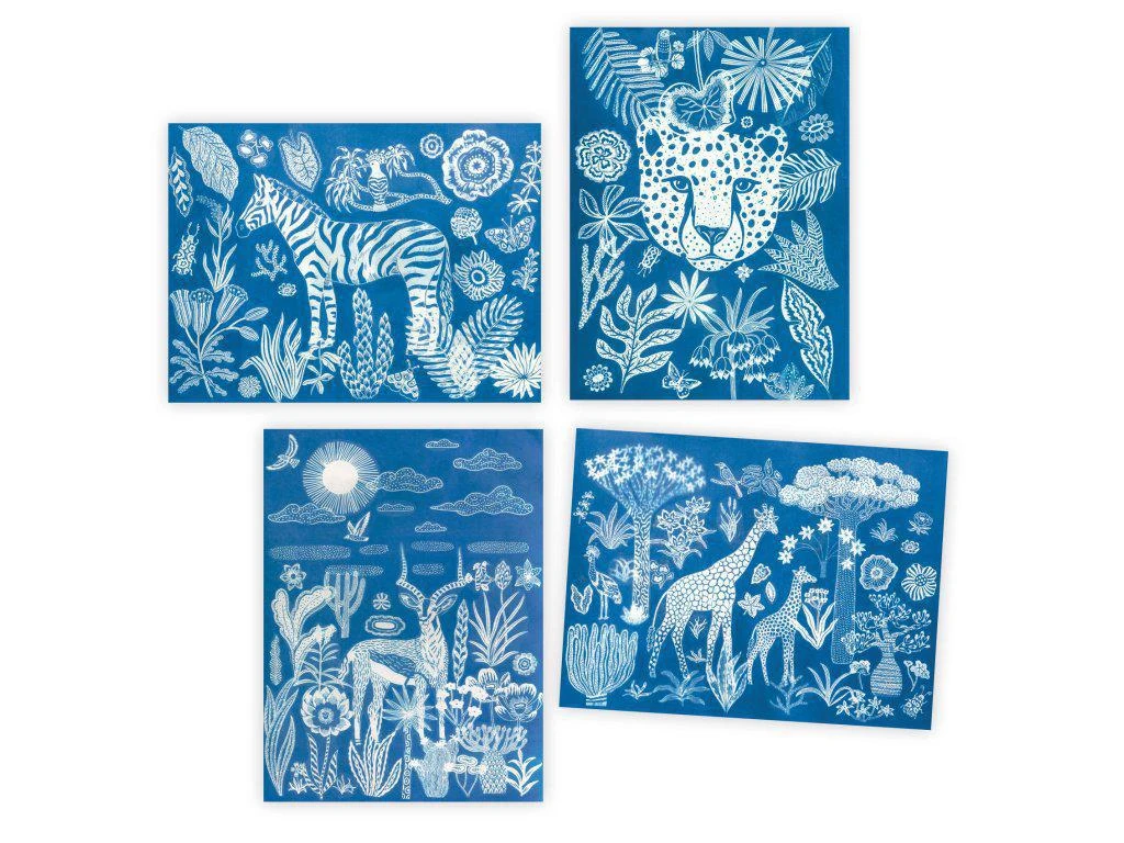Táto magická činnosť je založená na fotografickom procese: kyanotypiu Pomocou vzorov môžete vytvárať ilustrované scény na fotocitlivom papieri.