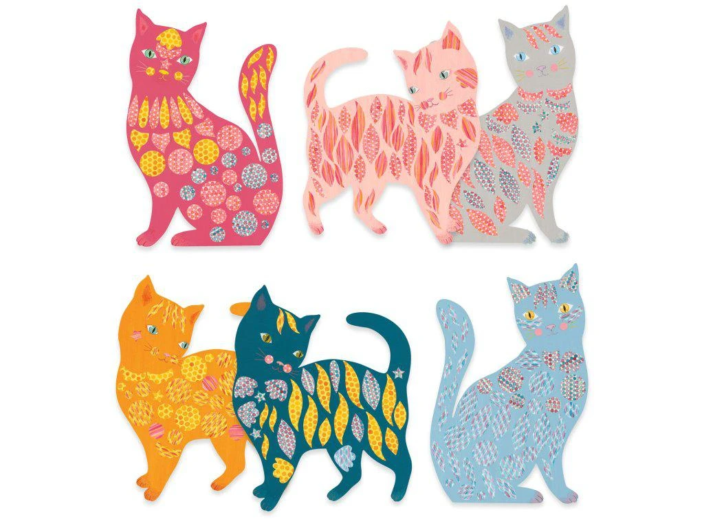 Vyberte si mačku a oblepte ju ľubovoľnými nálepkami, alebo postupujte podľa vzoru uvedeného v brožúre.