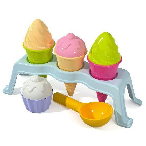 10dielna sada tvorítok na piesok - zmrzlina v stojane. Vyrobené v Taliansku z kvalitných plastov.