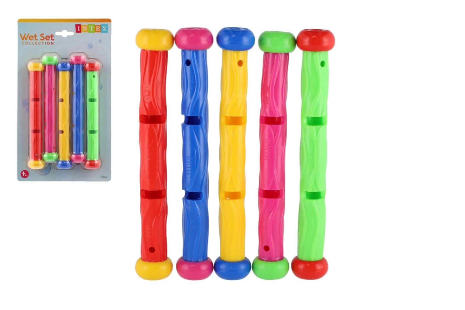Súprava obsahuje celkom päť tyčiek, čo umožňuje zapojenie viacerých detí naraz a podporuje spoločnú hru s kamarátmi alebo rodinou. Hra s tyčkami rozvíja koordináciu pohybov, sústredenia a zároveň posilňuje istotu vo vode.