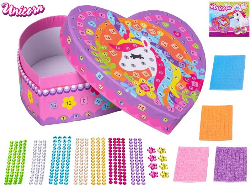 Unicorn sada - lepenie farebných kamienkov na šperkovnici 13 x 12,5 cm v krabičke