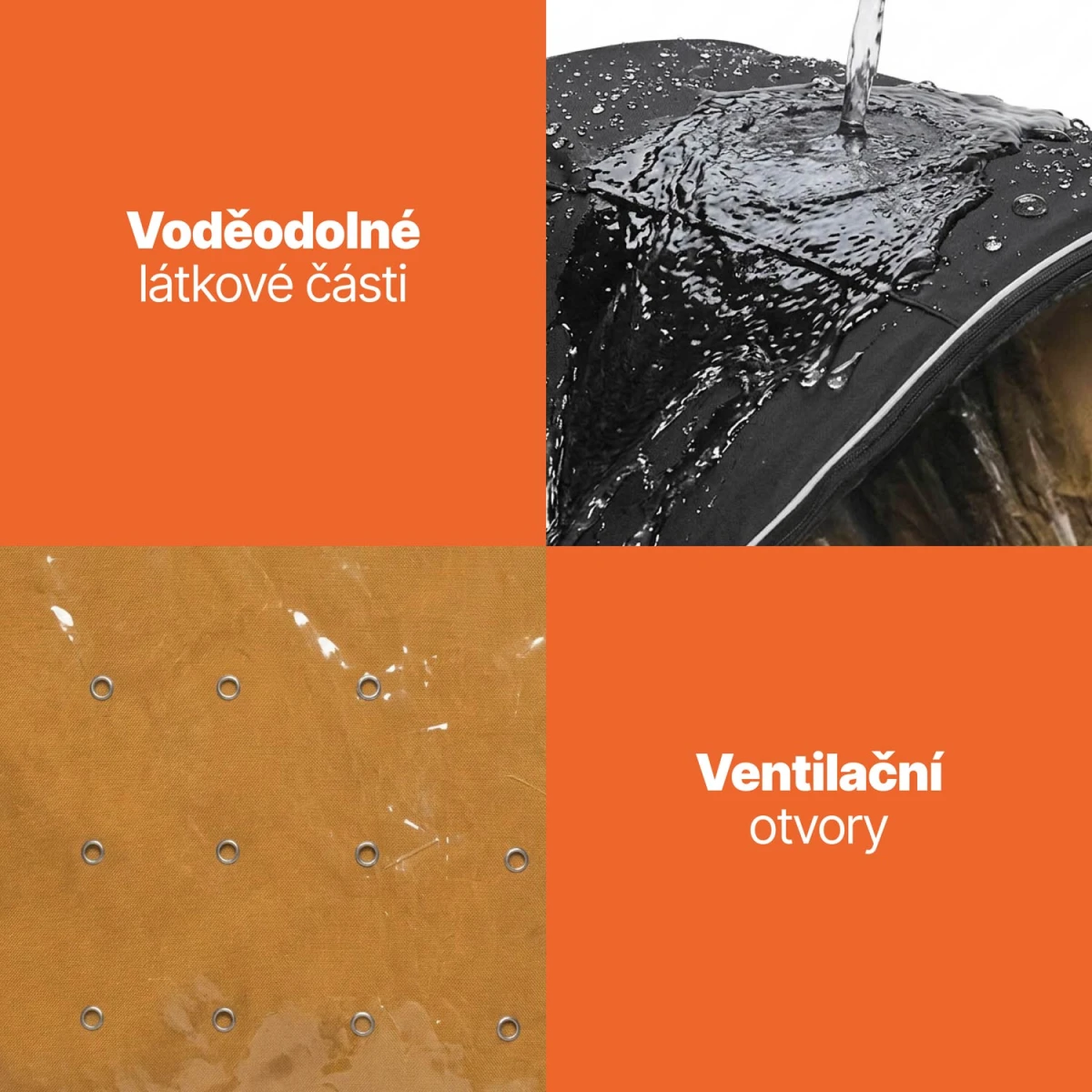 Odolný vodeodolný materiál spoľahlivo chráni pred nepriaznivým počasím, zatiaľ čo pevná konštrukcia drží tvar aj pri silnom daždi.