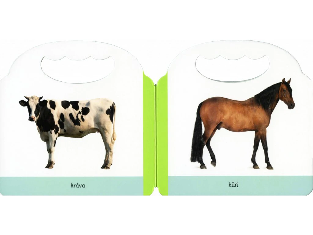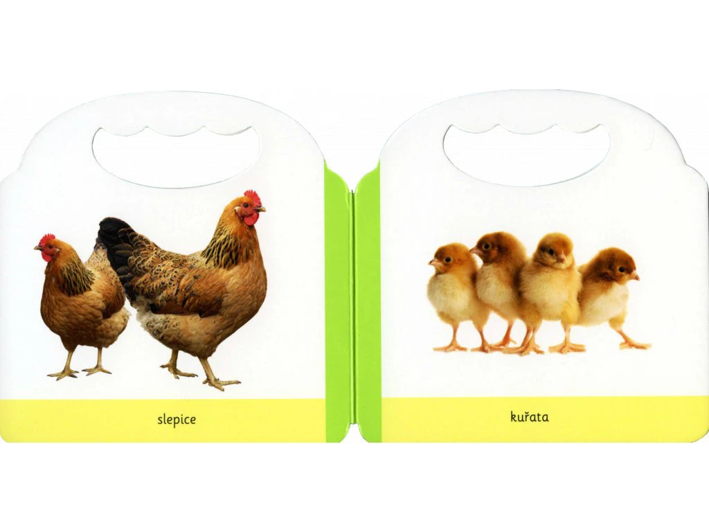 V tomto malom leporele z radu Malé kroky, ktorá podporuje postupné osvojovanie slov a jazyka, sa najmenšie deti zoznámia so zvieratami, mláďatami a potravinami z farmy.