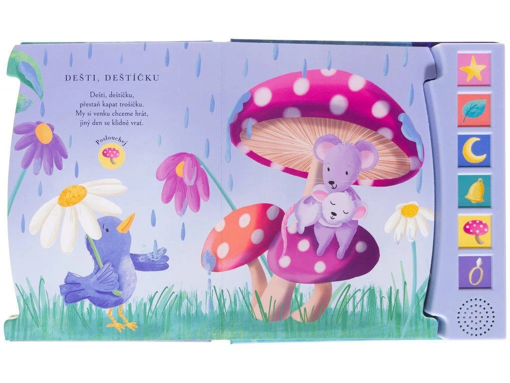V tejto zvukovej knižke na vás čaká šesť známych pokojných melódií, ktoré sú vhodné na počúvanie v postieľke pred zaspaním.