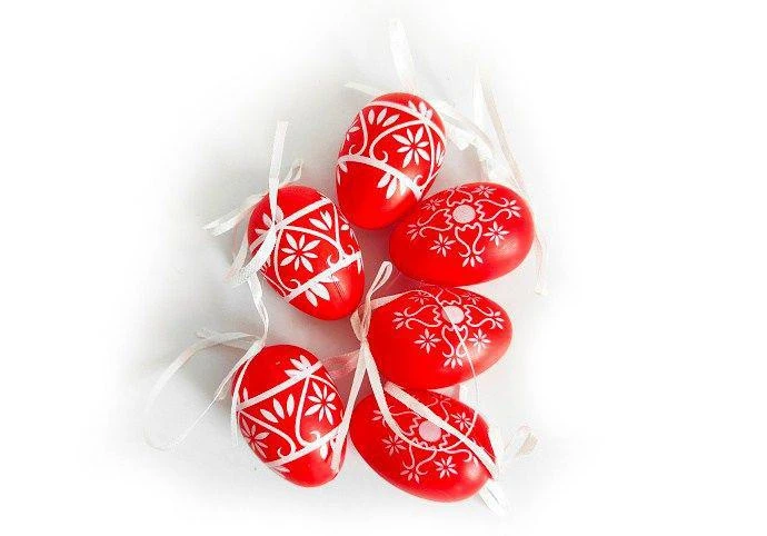 Vajíčko dekoračné plastové červené 6 cm, 6 ks v organza sáčku