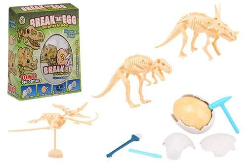 Rozbi vajíčko a vo vnútri nájdeš kostru dinosaura, súčasťou balenia je kladivko a metlička.