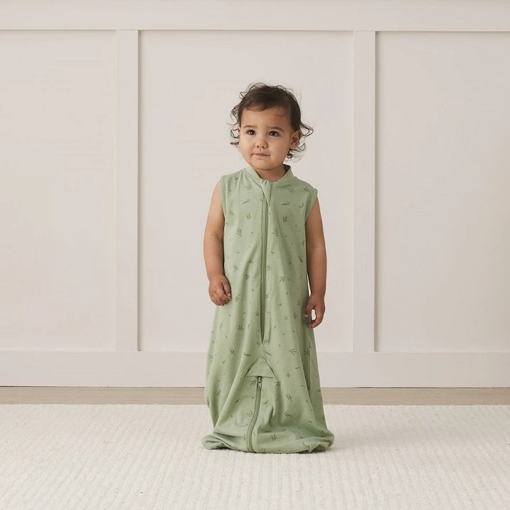 Vak na spanie 0,2 TOG Suit je ideálny na udržanie tepla pre dieťa počas noci v miestnostiach s teplotou 24 °C+. Hodnota TOG znamená, že pri používaní tohto výrobku nie sú potrebné ďalšie prikrývky v postieľke, čo z neho robí možnosť bezpečného spánku. Rodičia si môžu byť istí, že priedušná organická bavlna s certifikátom GOTS pomôže vášmu dieťaťu udržať počas spánku rovnomernú teplotu a zabráni prehriatiu. Elastické rukávy z organického džerseja sú z mäkkého materiálu a majú hodnotu 1,0 TOG, aby poskytovali dodatočné teplo počas chladných nocí. Rukávy sú vybavené vyhrnutými manžetami a rukavicami, ktoré udržujú v teple aj prsty a ruky. Rodičia sa môžu riadiť izbovým teplomerom ZADARMO a príručkou Čo si obliecť, ktorá je súčasťou výrobku, a vhodne pod ne navrstvovať, aby bolo ich dieťaťu teplo.