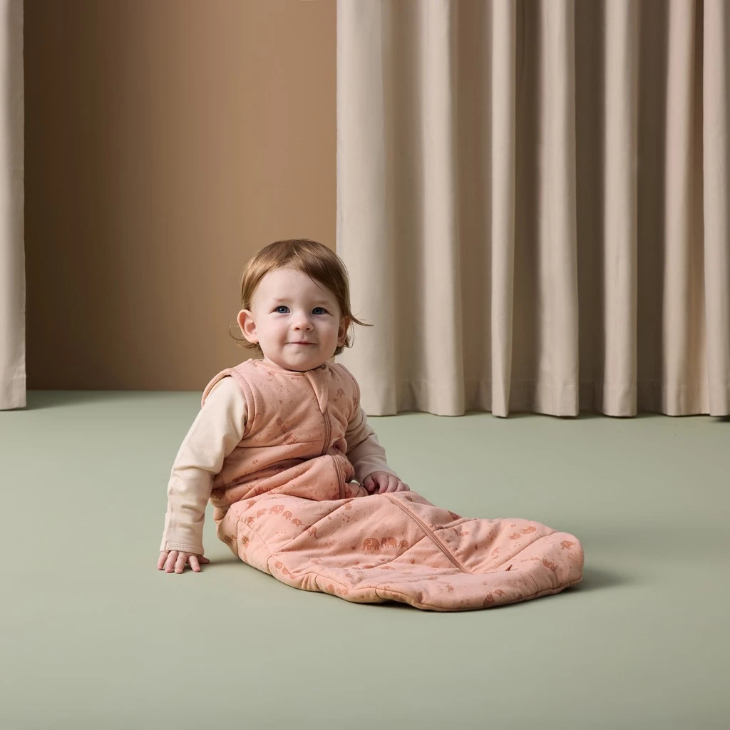 Spací pytel z organickej bavlny Jersey Elephant Parade 2,5 TOG od ErgoPouch poskytuje bábätku príjemné teplo, pohodlie a pokojné zázemie pre ničím nerušený spánok.