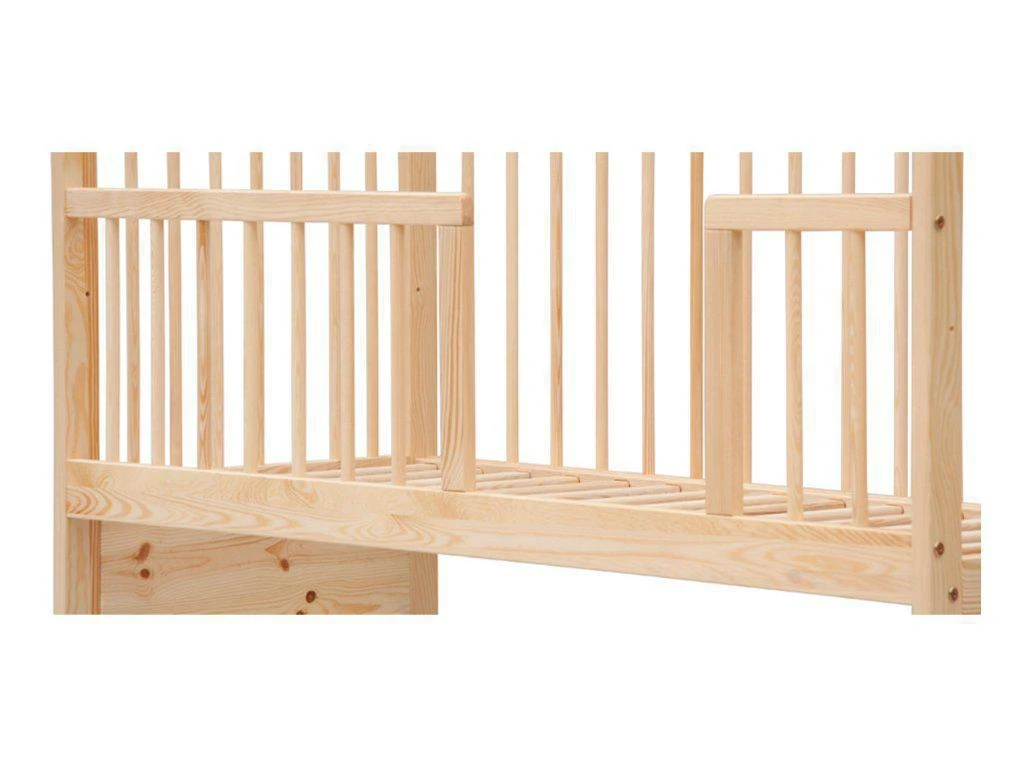 Bočnica je vyrábaná z borovicového dreva. Bočnicu je možné, za použitia vhodného náradia, doplniť k akejkoľvek postieľke o rozmere 120 x 60 cm z našej ponuky.