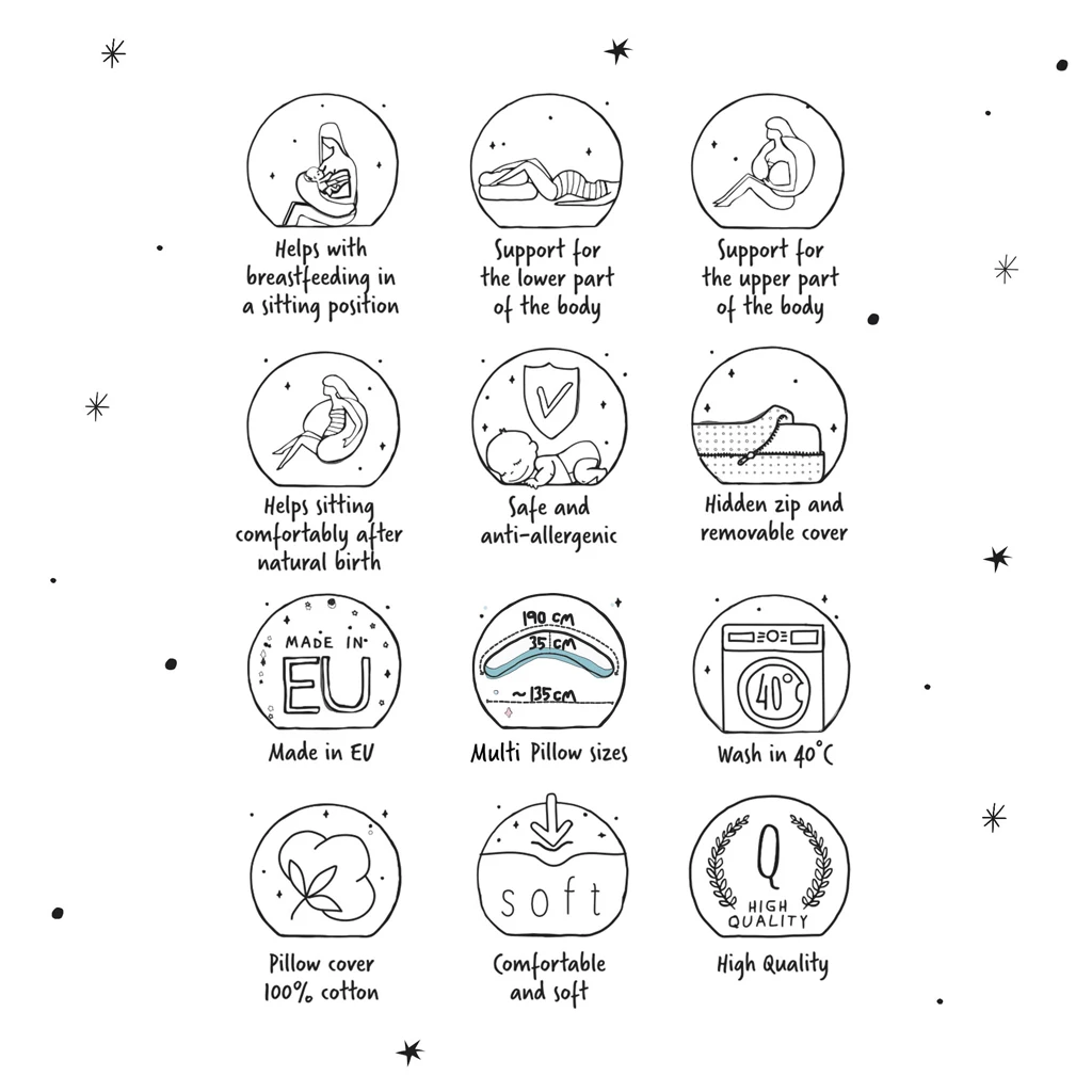 Dôležité: Pred každým použitím vždy skontrolujte stav vankúša, aby bola zaistená maximálna bezpečnosť a pohodlie pre vás aj vaše dieťa.