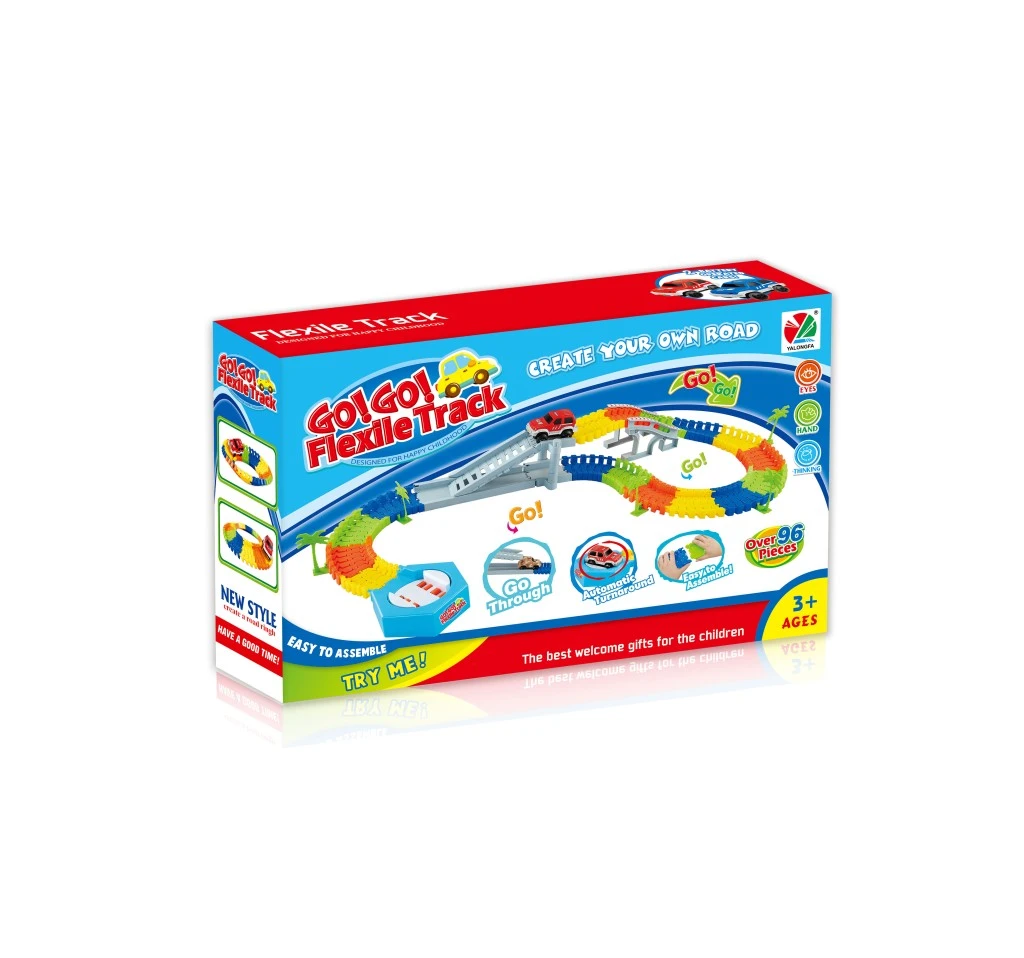 Diely sa dajú ľahko spájať, ohýbať a tvarovať podľa fantázie, takže si deti môžu postaviť zakaždým inú trať. Súčasťou je jedno autíčko, ktoré po zapnutí vyrazí na cestu po šírke koľajnice 7,8 cm.