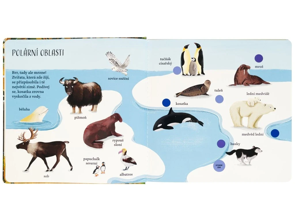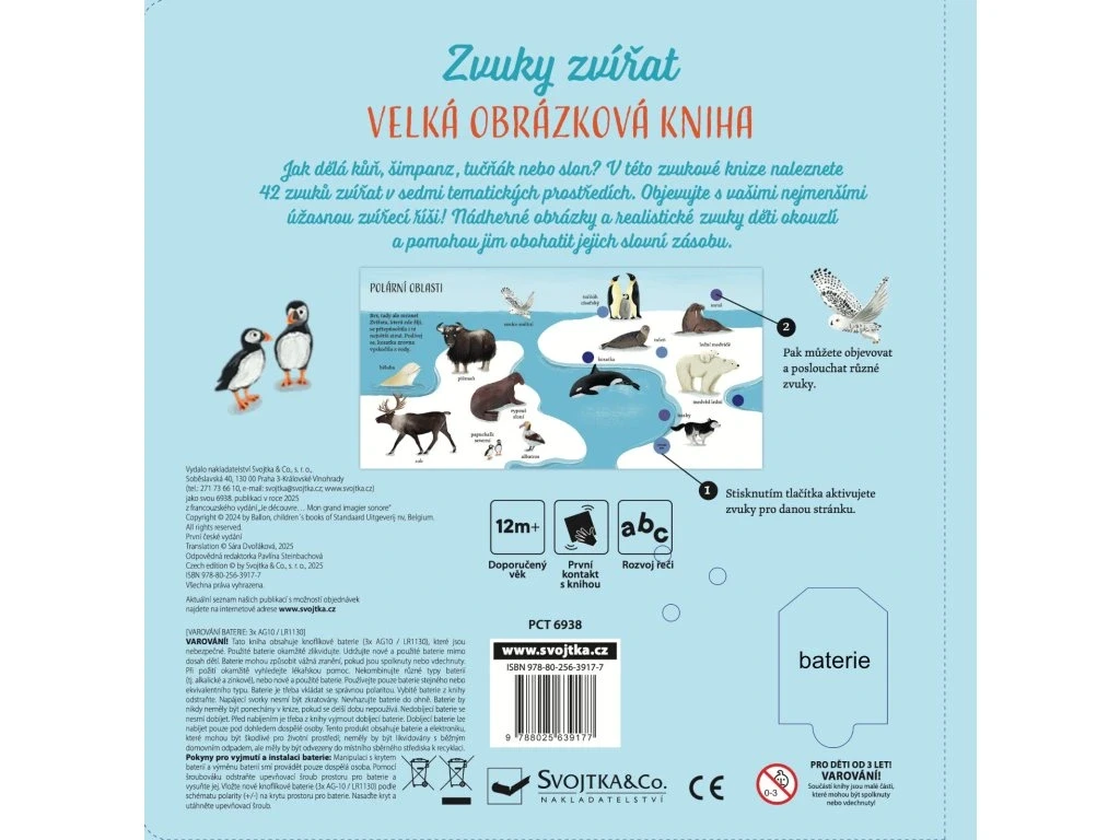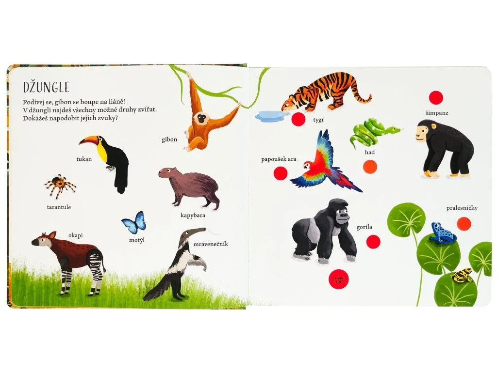 Ako robí kôň, šimpanz, tučniak alebo slon? V tejto zvukovej knihe nájdete 42 zvukov zvierat v siedmich kapitolách rozdelených podľa tém - les, farma, džungľa, polárne oblasti, savana, vtáky a mláďatá. Nádherné obrázky, ktoré sú jednoducho a prehľadne rozmiestnené na stránkach, zaujmú malé deti a pomôžu im obohatiť ich slovnú zásobu. Realistické zvuky ich okúzlia a ponúknu ďalší rozmer zoznámenia so zvieratami celého sveta.