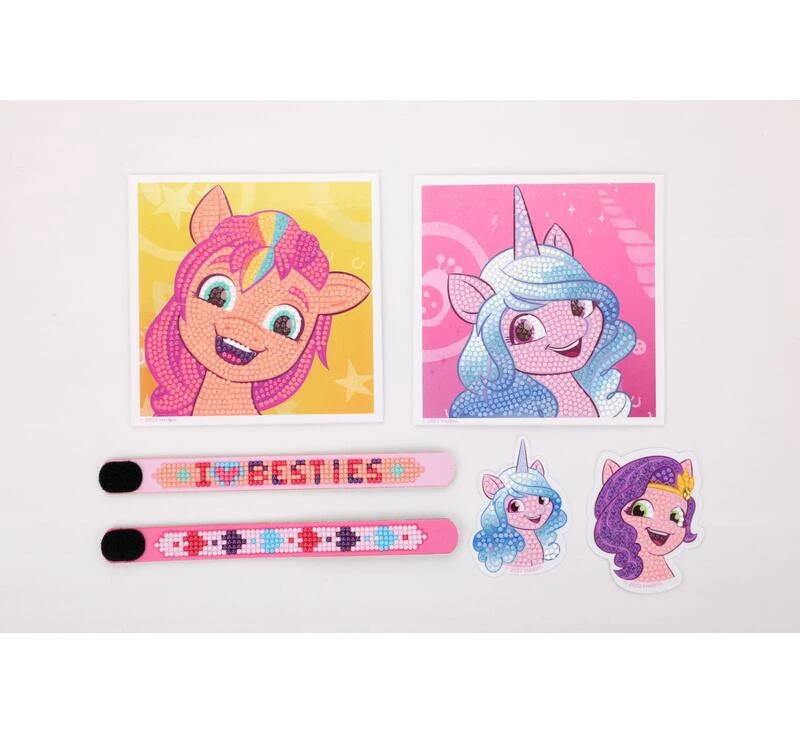 V tejto sade nájdeš všetko 2x, takže môžeš jednoducho tvoriť so svojim súrodencom alebo kamarátom. Vytvorte si obrázky, náramky a samolepky obľúbených poníkov My Little Pony.
