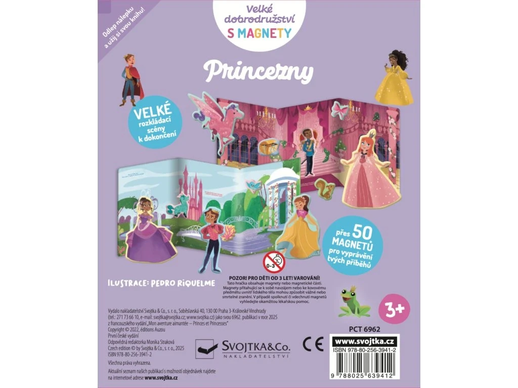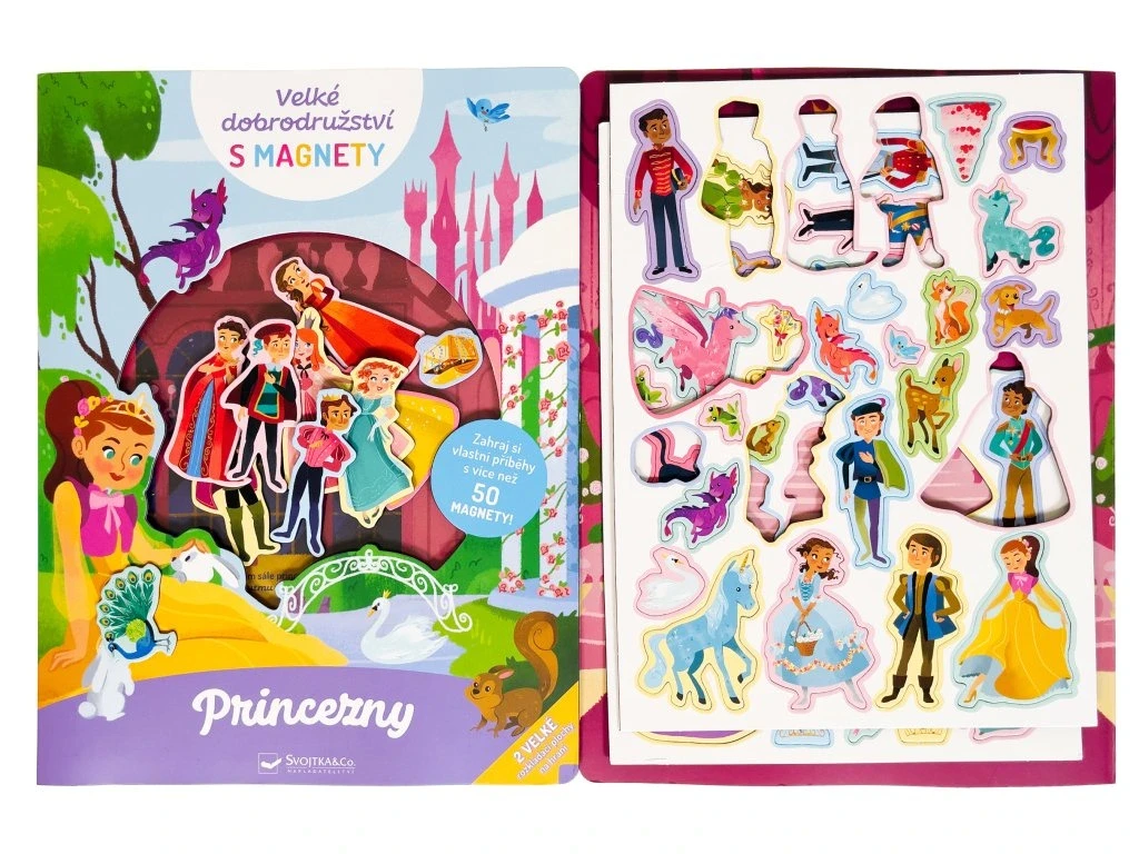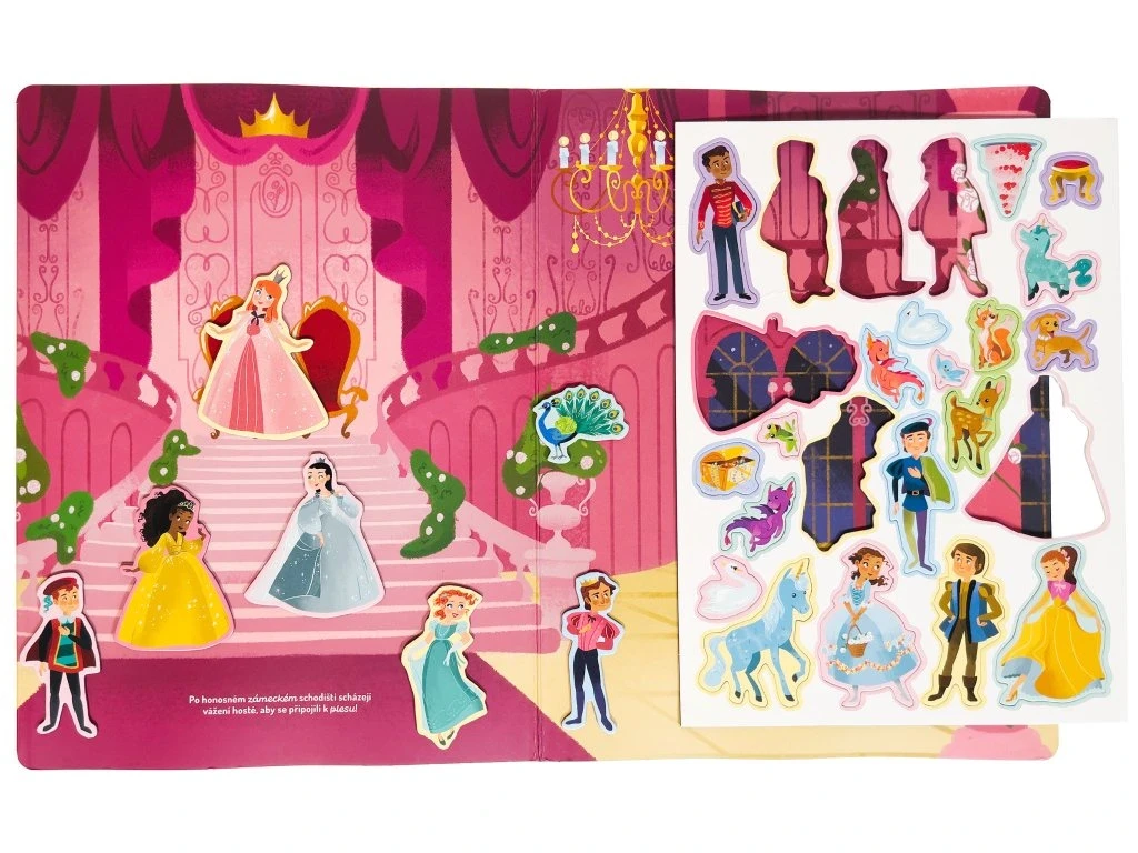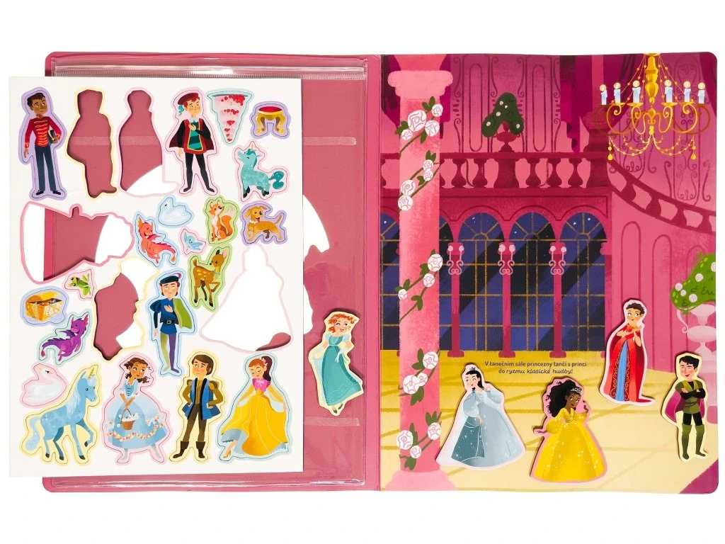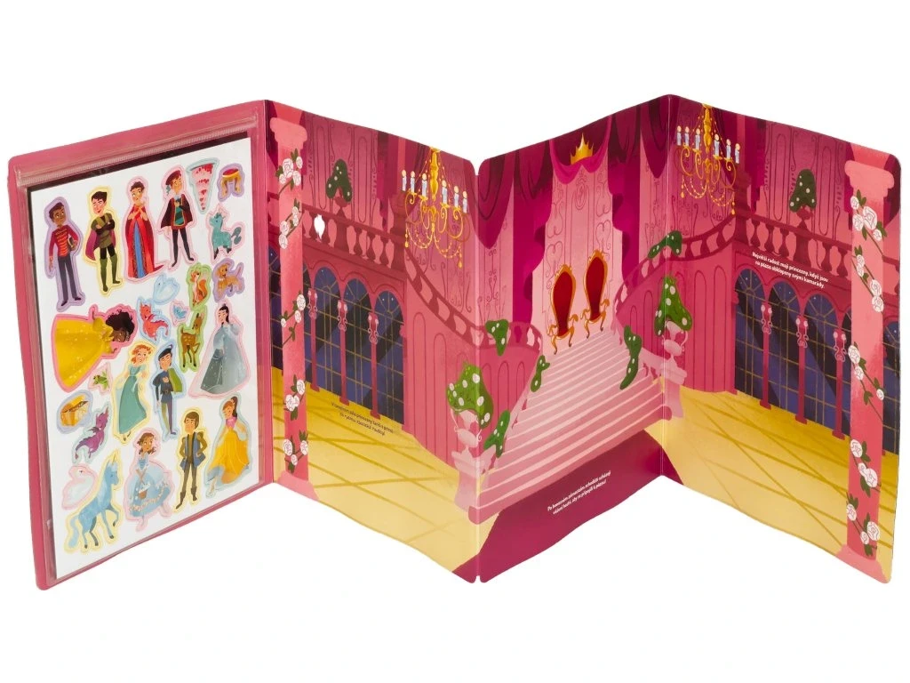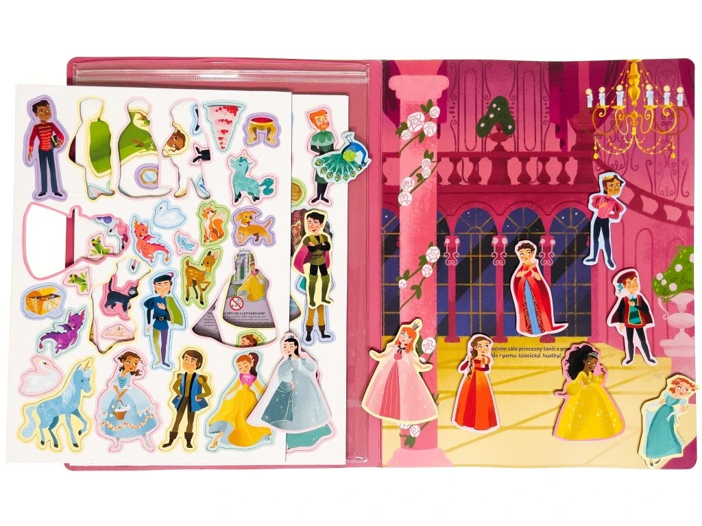 Vydaj sa do rozprávkového sveta princezien a princov s touto rozkladacou magnetickou knihou! Po roztiahnutí meria 300 × 920 mm a obsahuje dve veľké scény na doplnenie viac ako 50 farebnými magnetmi. Vytvor si vlastné príbehy v zámockej záhrade plnej kúzelných bytostí alebo v tanečnom sále, kde sa koná slávnostný ples. Pri hre s magnetmi si deti rozvíjajú jemnú motoriku, predstavivosť aj slovnú zásobu. Ideálny darček pre malých milovníkov rozprávok a kráľovských dobrodružstiev.