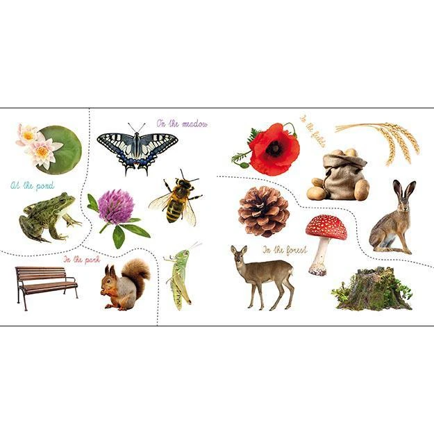 Vzdelávacia kniha samolepiek pre najmenších obsahuje 16 strán plných obrázkov a prvých slov a 4 archy samolepiek na nalepenie na správne miesta.