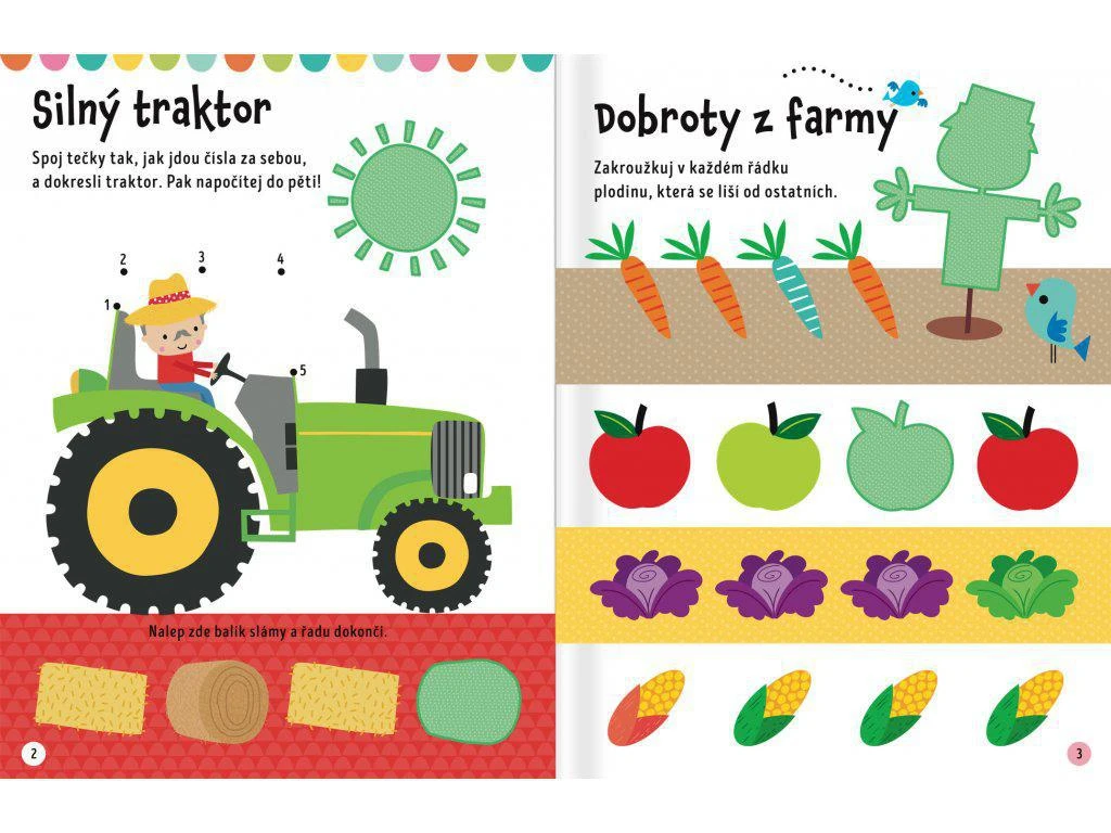 Poď sa pohrať s kamarátmi z farmy v tejto prekrásnej knižke plnej aktivít! Kresli, vyfarbuj, dopĺňaj a nalepuj roztomilé samolepky k aktivitám na každej stránke.