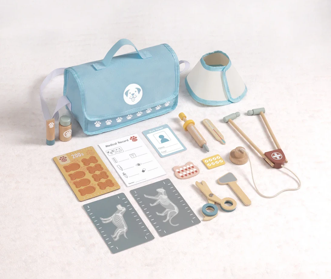 - 16 kusov vybavenia, ktoré umožňujú dieťaťu hrať sa na veterinára kdekoľvek - sada obsahuje praktickú tašku na nosenie.