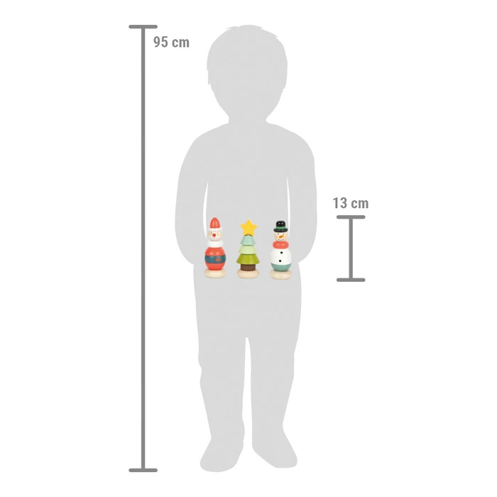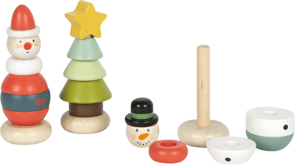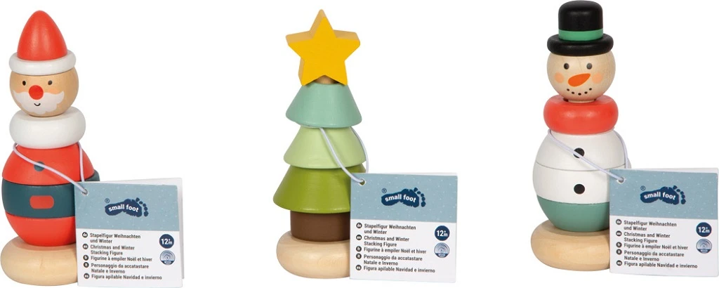So snehuliakom, vianočným stromčekom a Santa Clausom bude skladanie počas adventného obdobia ešte kúzelnejšie. Tieto drevené vianočné figúrky sa skladajú z 5 farebných dielikov, ktoré sa ľahko zasúvajú a skladajú na seba. Každá stohovacia figúrka je vyrobená z kvalitného dreva a zdobená veselým, priateľským motívom.