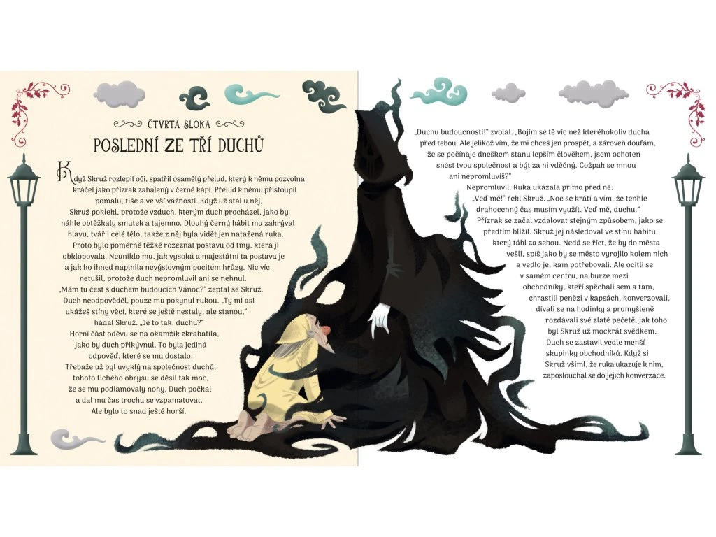 Prežite čaro Vianoc s novým vydaním nadčasovej klasiky Vianočná koleda od Charlesa Dickensa. Tento milovaný príbeh o chamtivom Ebenezerovi Skružovi bol citlivo prerozprávaný pre mladších čitateľov a doplnený neuveriteľne bohatými, živými a veselými ilustráciami. Na Štedrý večer Skruže navštívia traja tajomní duchovia - Duch minulých, súčasných a budúcich Vianoc. Vezmú ho na nezabudnuteľnú cestu časom, ktorá mu pomôže znovu objaviť pravý zmysel vianočných sviatkov: radosť, lásku a štedrosť. Ponorte sa do tohto dojemného príbehu o premene, ktorý prináša dôležité posolstvo o ľudskosti a nádeji. Ideálne vianočné čítanie pre celú rodinu!