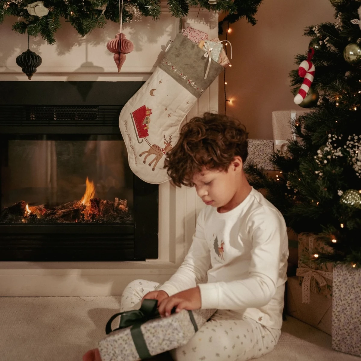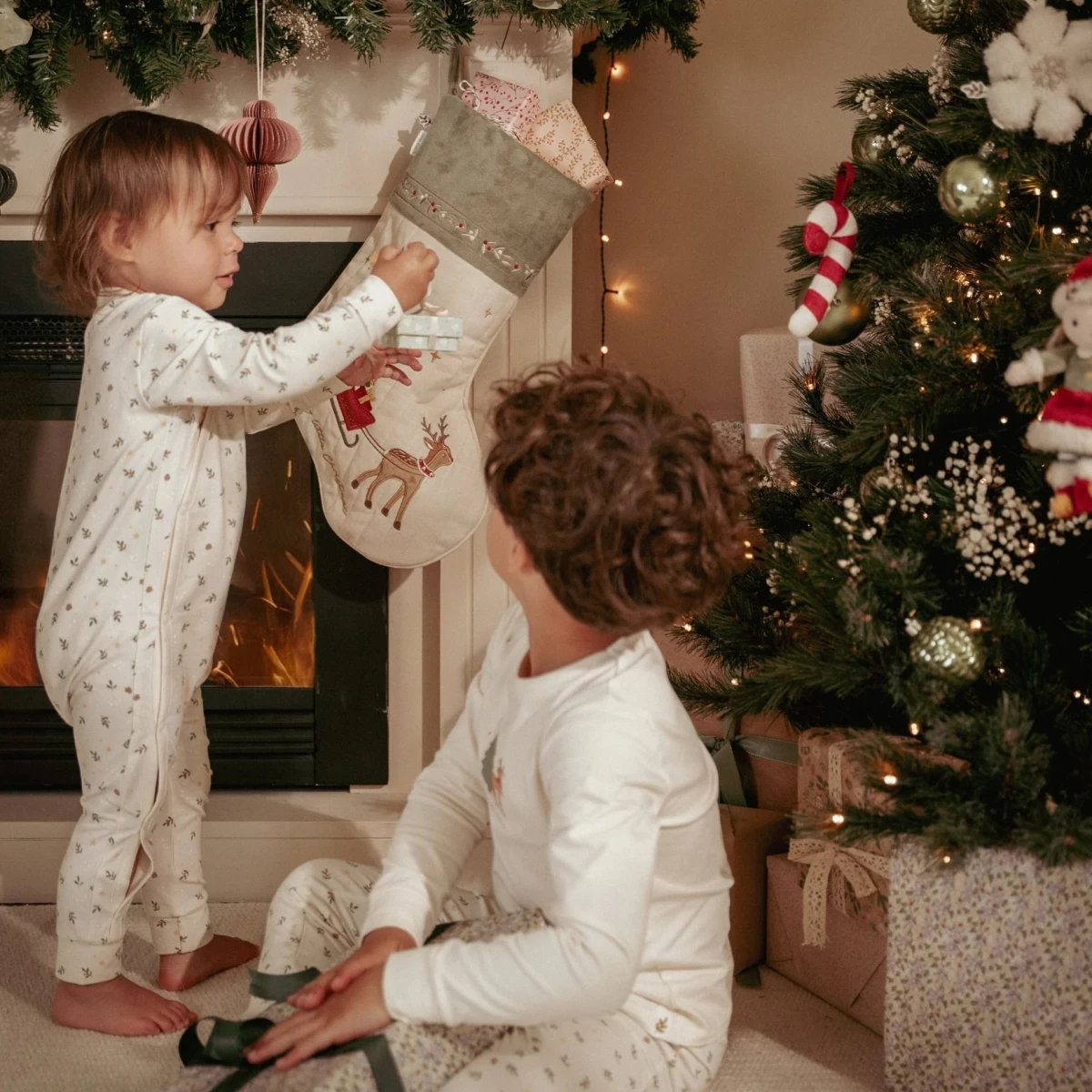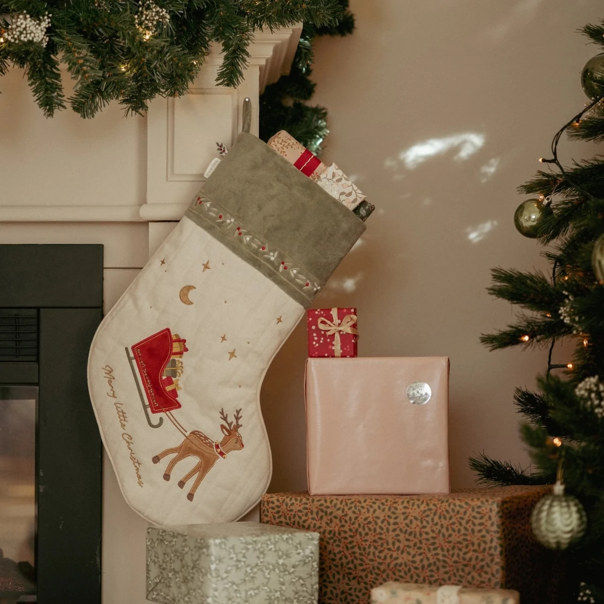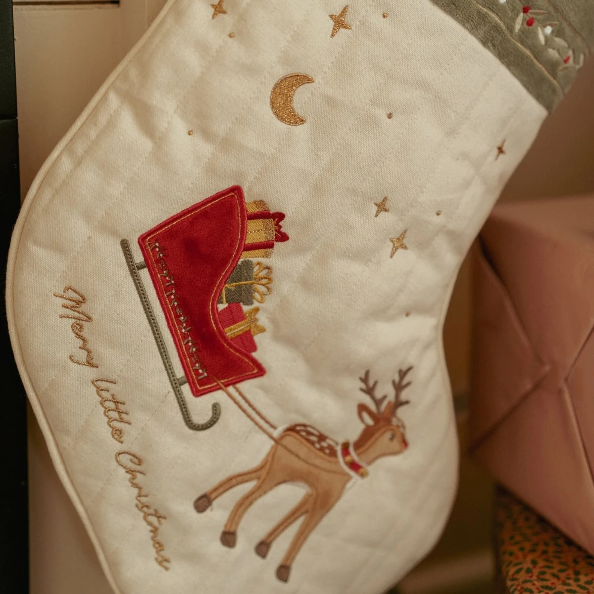 Vneste do svojho domova teplo a kúzlo Vianoc s touto krásnou vianočnou pančuchou z mäkkej, prešívanej látky. Je ozdobená jemnou výšivkou s motívom soba, saní s darčekmi a trblietavých hviezd. Vďaka svojmu nadčasovému dizajnu v prírodných farbách skvele ladí s pokojnou a tradičnou vianočnou výzdobou.