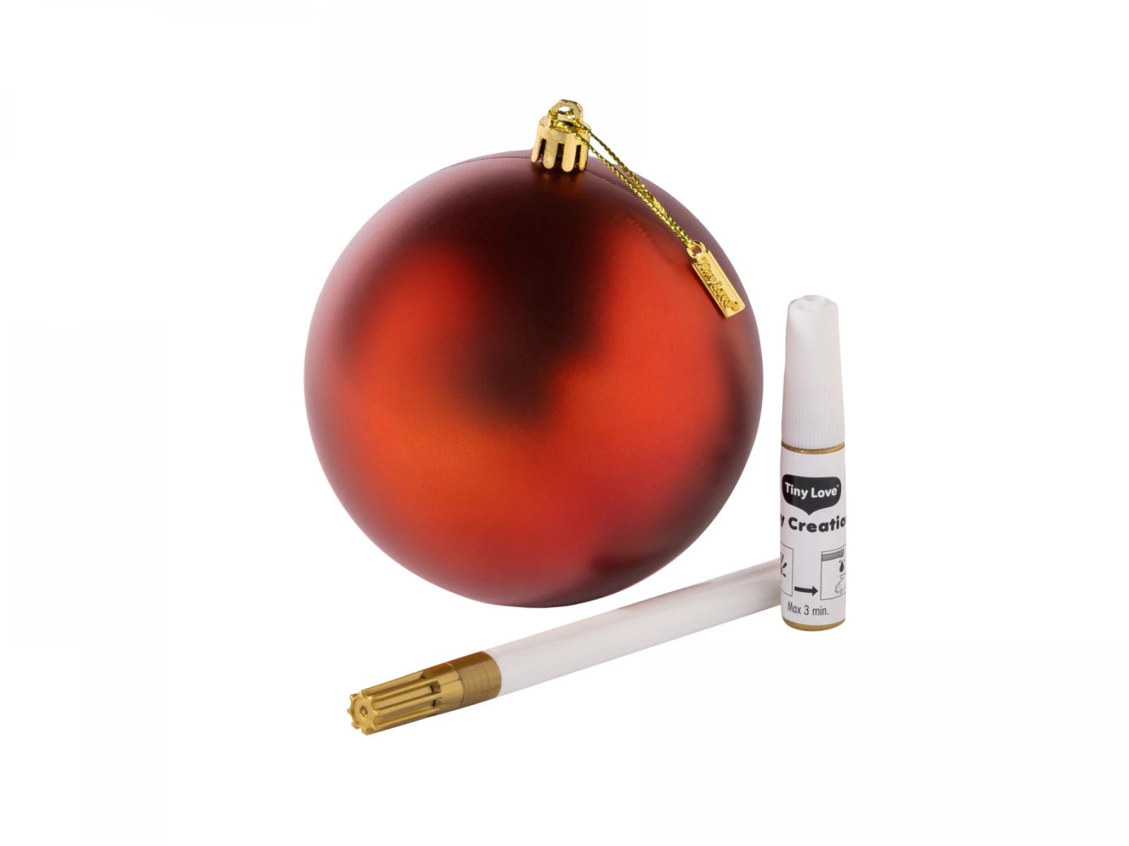 Obsah balenia: vianočné gule z vysoko kvalitného plastu, zlatá farba v tube (dermatologicky testovaná), zlatá fixka, návod krok za krokom