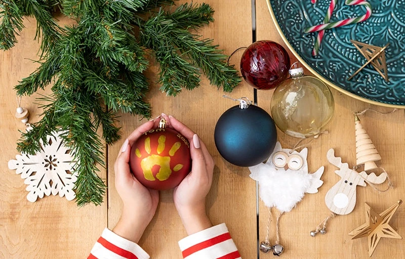 Jednoduchý spôsob, ako vytvoriť osobnú vianočnú ozdobu s odtlačkom dieťaťa.