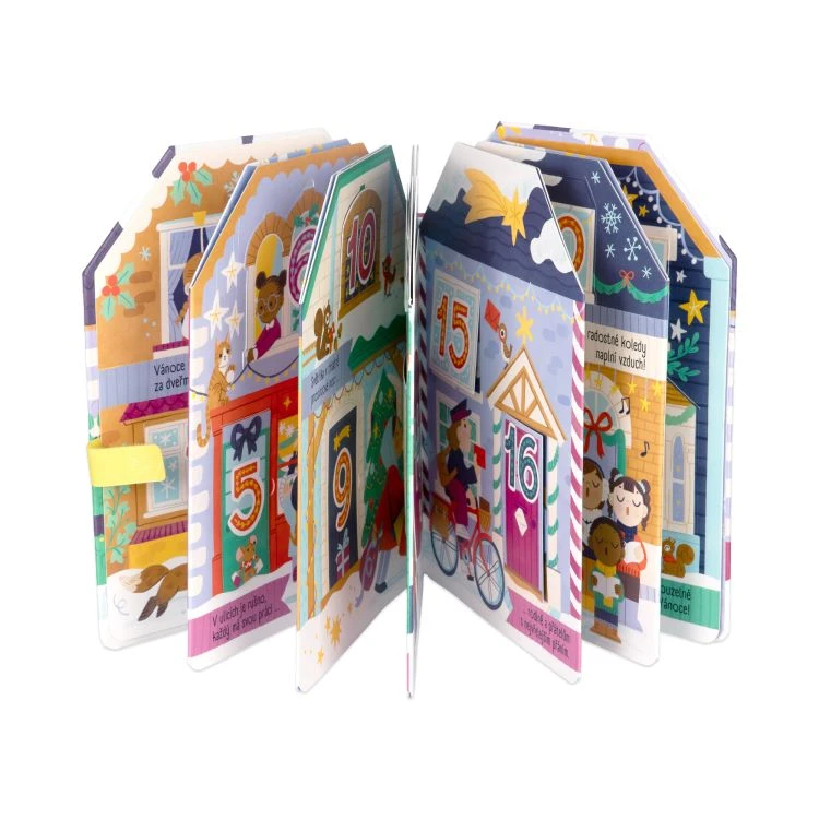 Atypický tvar knihy v tvare domčeka má uzatváranie na suchý zips a na konci ďalších 5 tipov na vianočné aktivity.