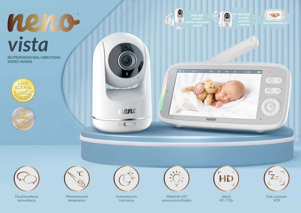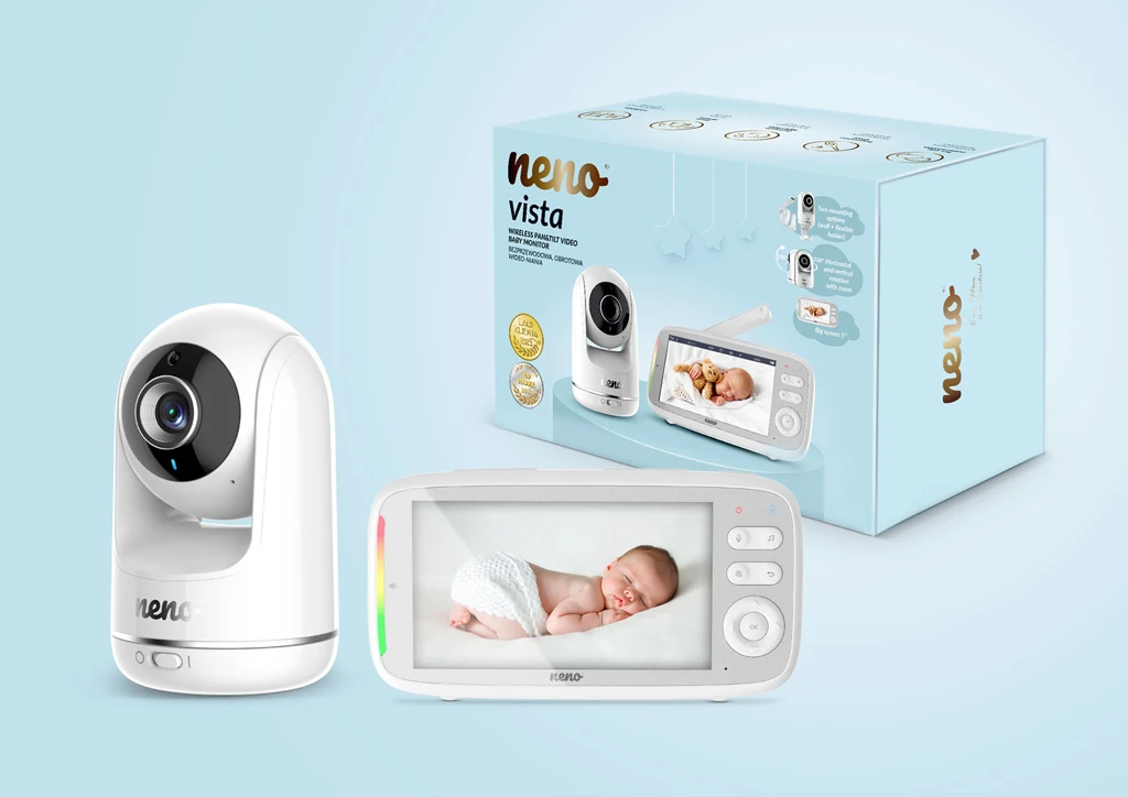 Majte pokoj na duši a prehľad o svojom dieťatku s videoopatrovateľkou Neno Vista - video monitorom s diaľkovým bezdrôtovým prijímačom a funkciami pre bezpečné a pohodlné sledovanie vášho bábätka.