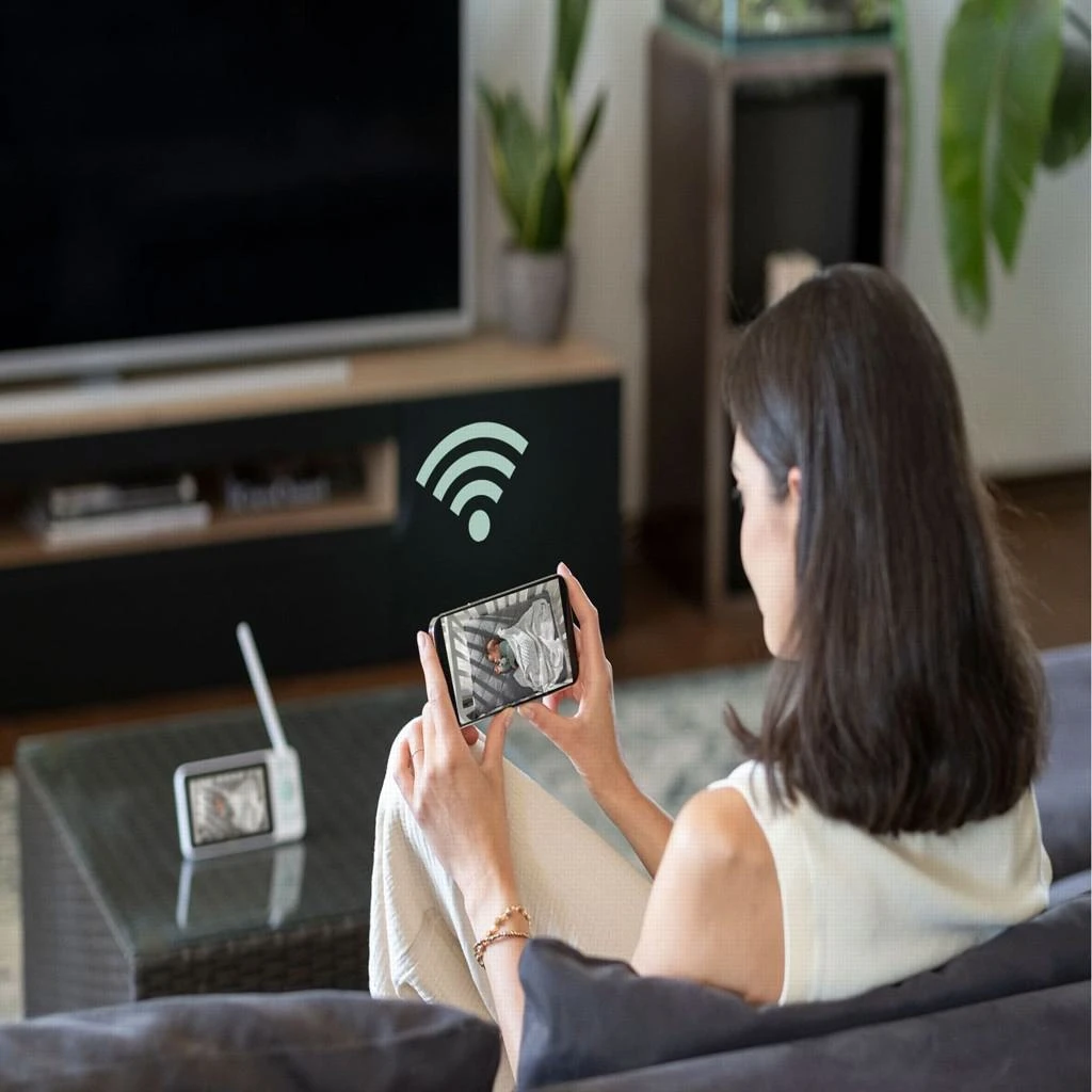 Vďaka detekcii pohybu a zvuku, nočnému videniu, 8 uspávankám a meraniu teploty a vlhkosti máte svoje bábätko vždy pod dohľadom – pohodlne, bezpečne a štýlovo.