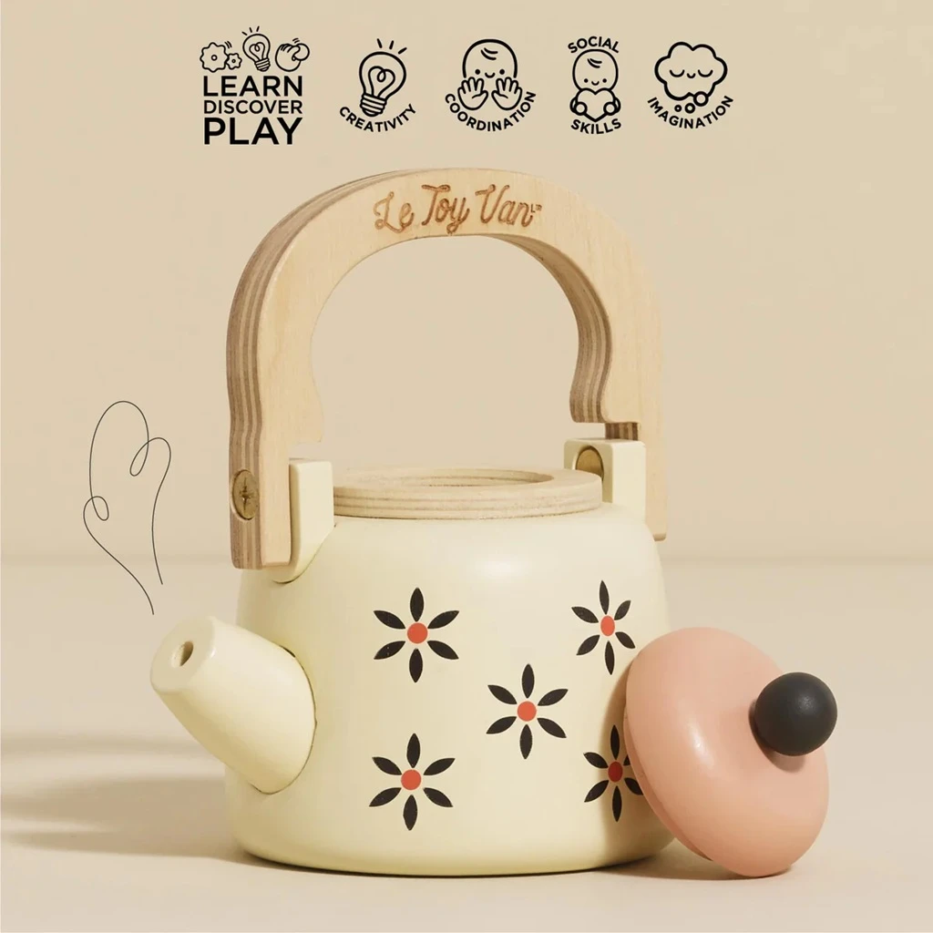 Vďaka odnímateľnému viečku a praktickej nalievacej rukoväti s gravírovanými detailmi sa deti môžu hrať na prípravu čaju, kúzelných elixírov alebo pohostiť svoje bábiky a plyšové hračky. Hra podporuje fantáziu, jemnú motoriku aj spoločenskú hru.