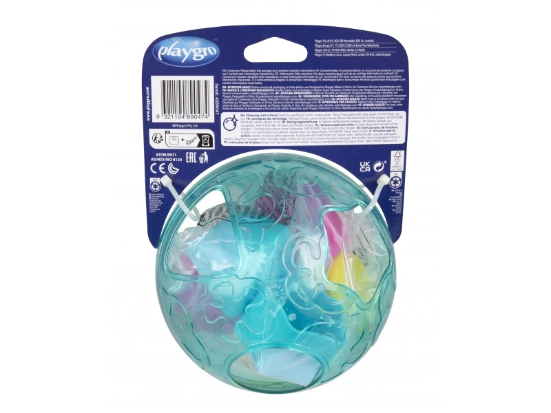 • Zábava so zvukom a pohybom: Kutáľajte loptičku, traste s ňou a sledujte, ako sa tvary vo vnútri veselo hrkajú! Tieto zvuky a pohyby upútajú pozornosť bábätka a stimulujú jeho sluchové vnímanie.