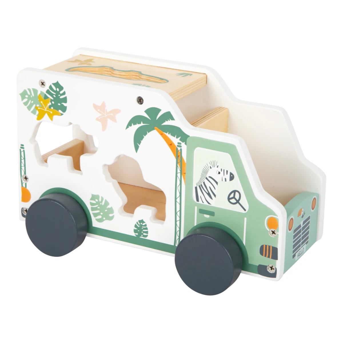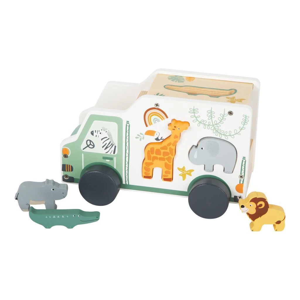 Vkladacia hračka a drevené autíčko v jednom. Drevená vkladačka v populárnom safari designe.