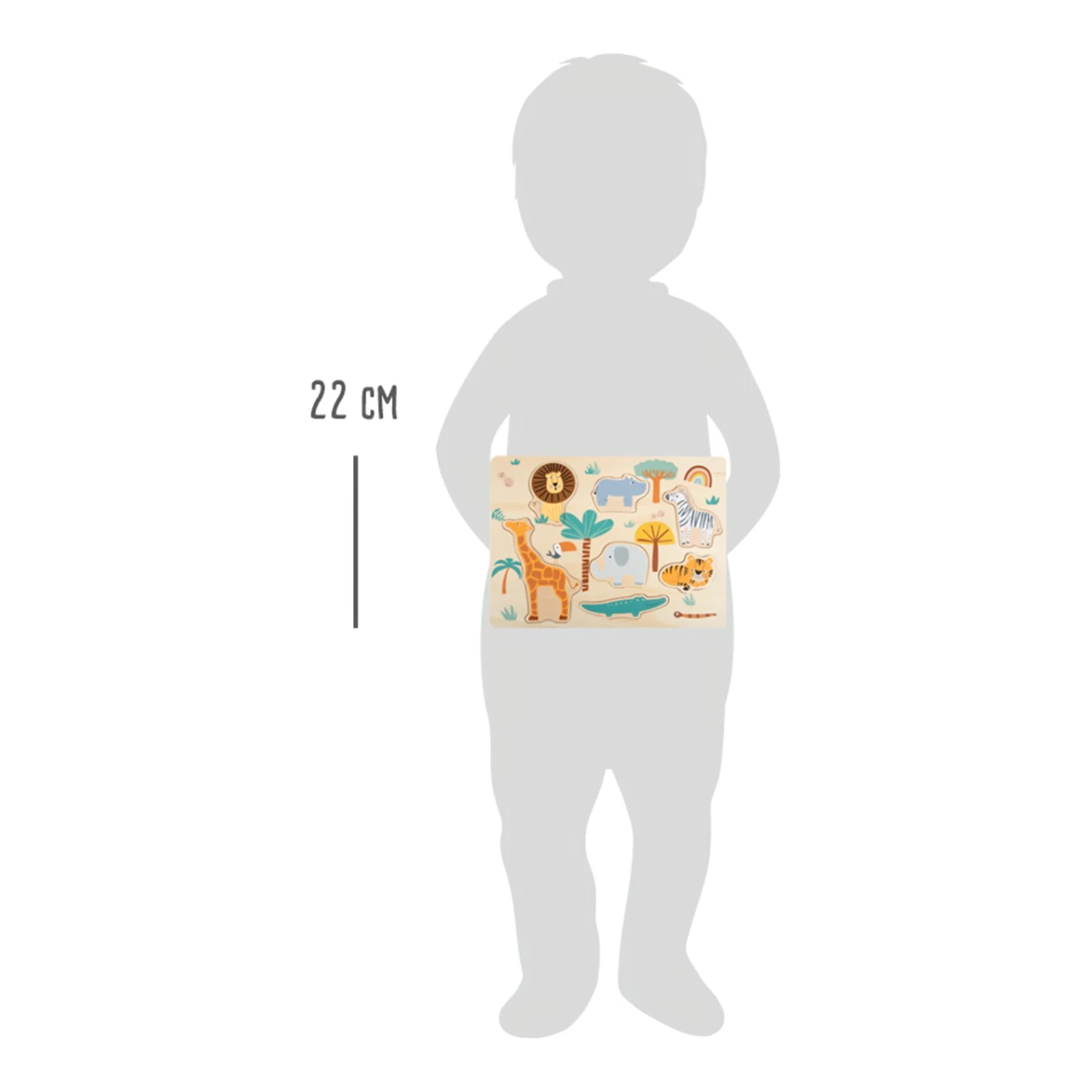 Vitajte na safari! Toto drevené puzzle ma za cieľ vrátiť zvieratká savany späť na ich miesto.
